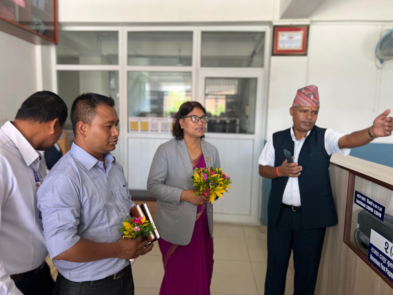 माननीय मन्त्री श्री विन्दु श्रेष्ठज्यूको यस कार्यालयमा भएको कार्यालय निरीक्षणका केही तस्बिरहरू।