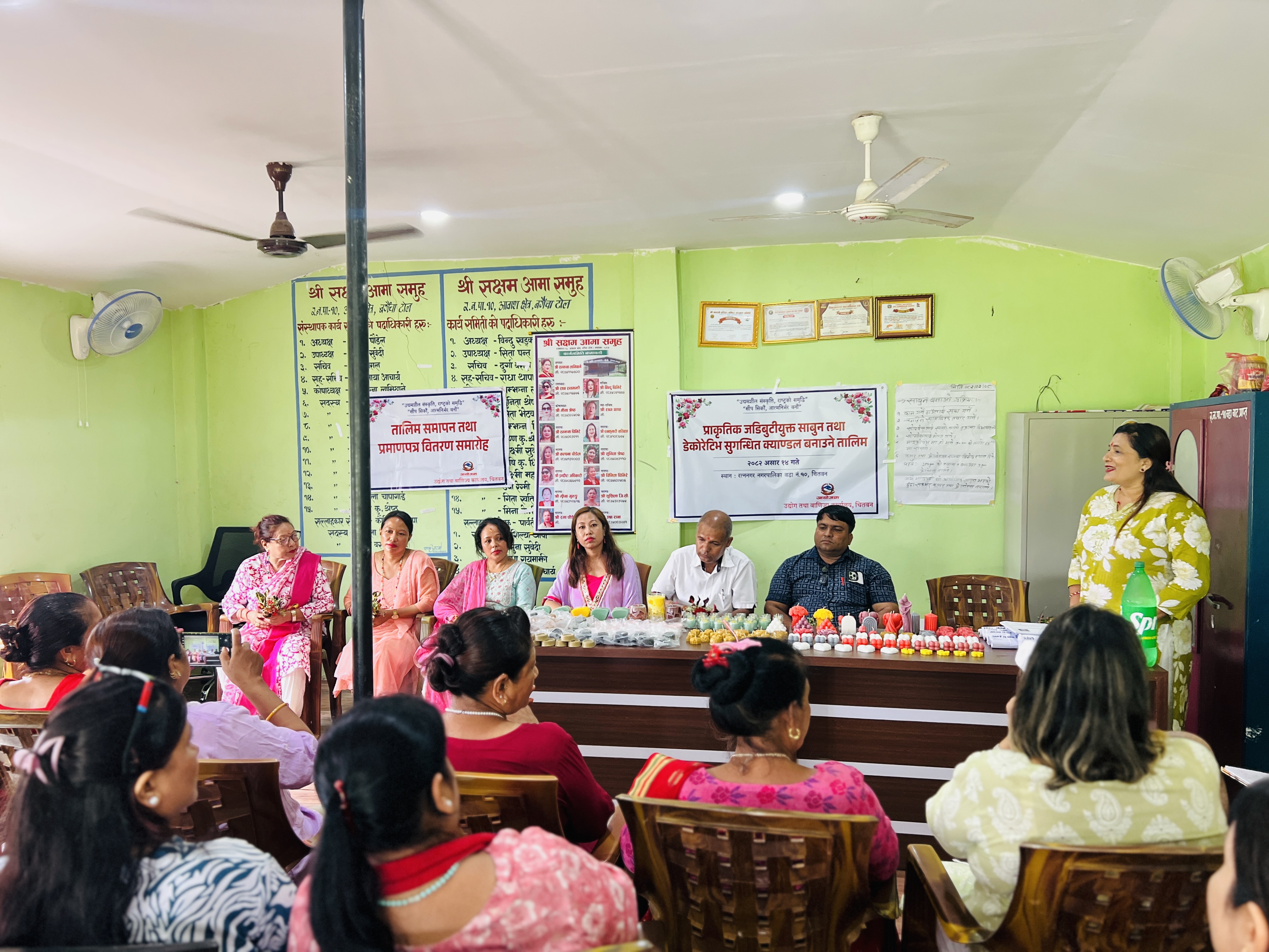 आ.व. 081-082 मा मिति 2082-03-14 देखि 2082-03-22 सम्म प्राकृतिक जडिबुटियुक्त साबुन तथा सुगन्धित क्याण्डल बनाउने सिपमूलक तालिम रत्ननगर नगरपालिका वडा नं. 10, चितवनमा सञ्चालन भएका केही तस्विरहरू।