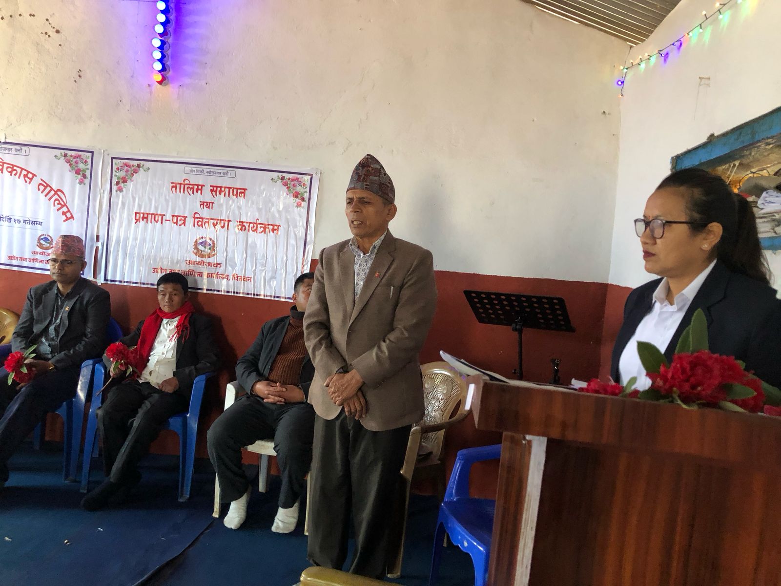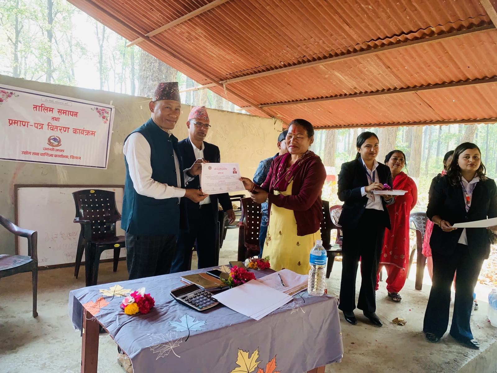 इच्छाकामना गाउँपालिकामा मिति २०८१ फागुन ८ देखि १७ गतेसम्म उद्यमशीलता विकास तालिम र १८ गतेदेखि २४ गतेसम्म मौसमी सागबाट गुन्द्रुक र स्थानीय उपजबाट अचार बनाउने तालिम सफलतापूर्वक सम्पन्न भई समापन तथा प्रमाणपत्र वितरण गरिएको छ।