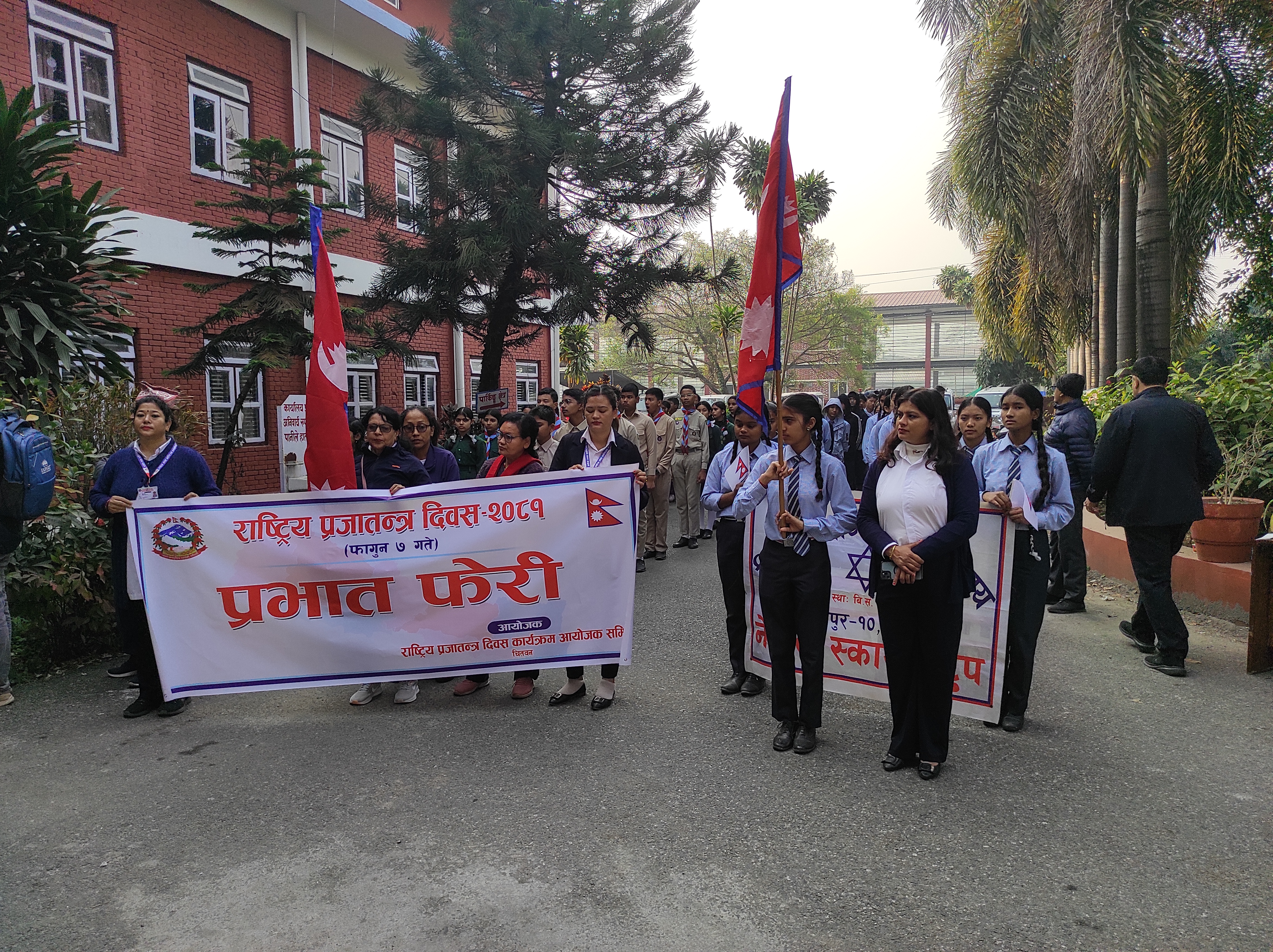 राष्ट्रिय प्रजातन्त्र दिवस २०८१ को अवसरमा फागुन ७ गते आयोजित प्रभात फेरि कार्यक्रममा सहभागिता।