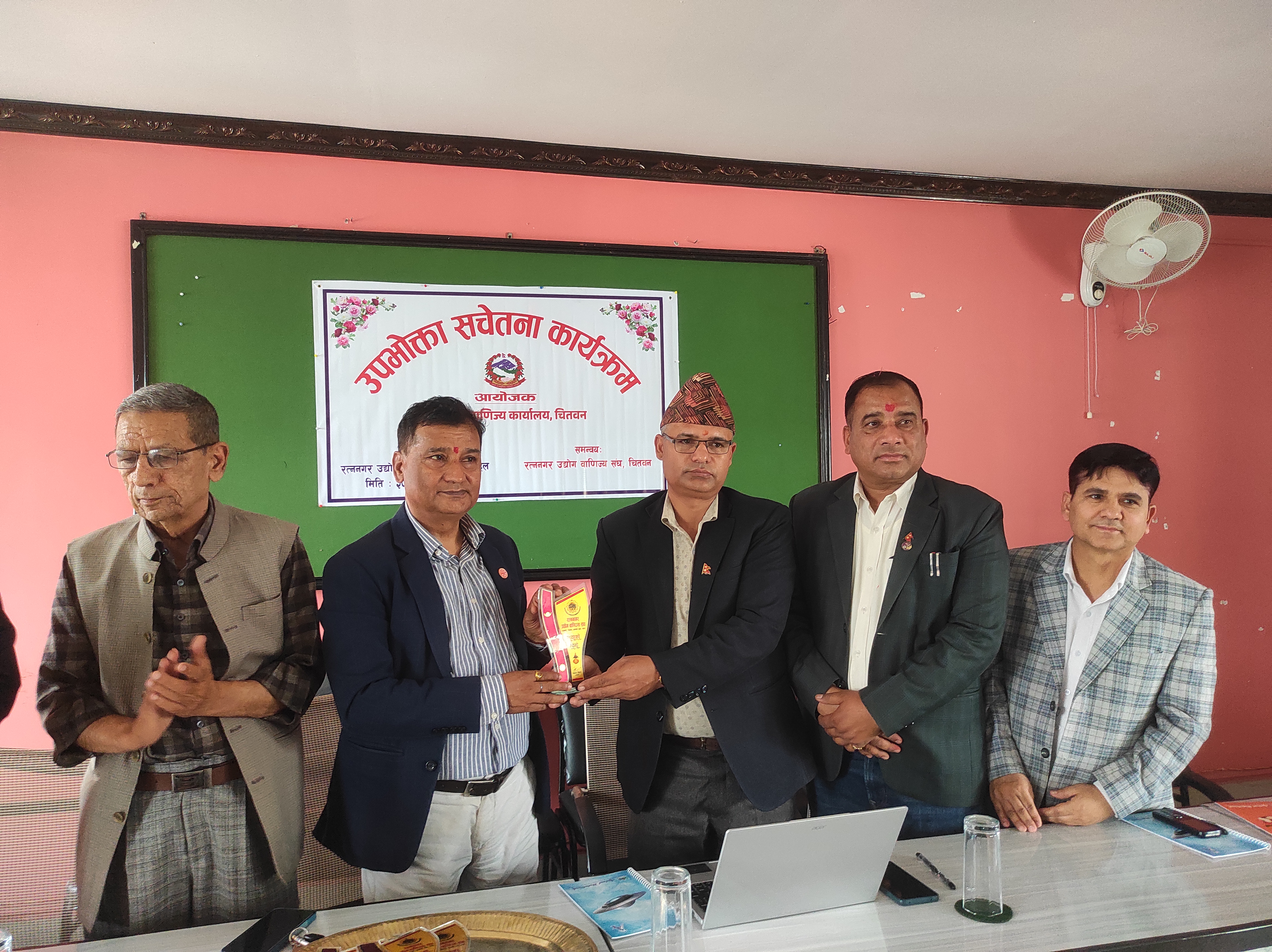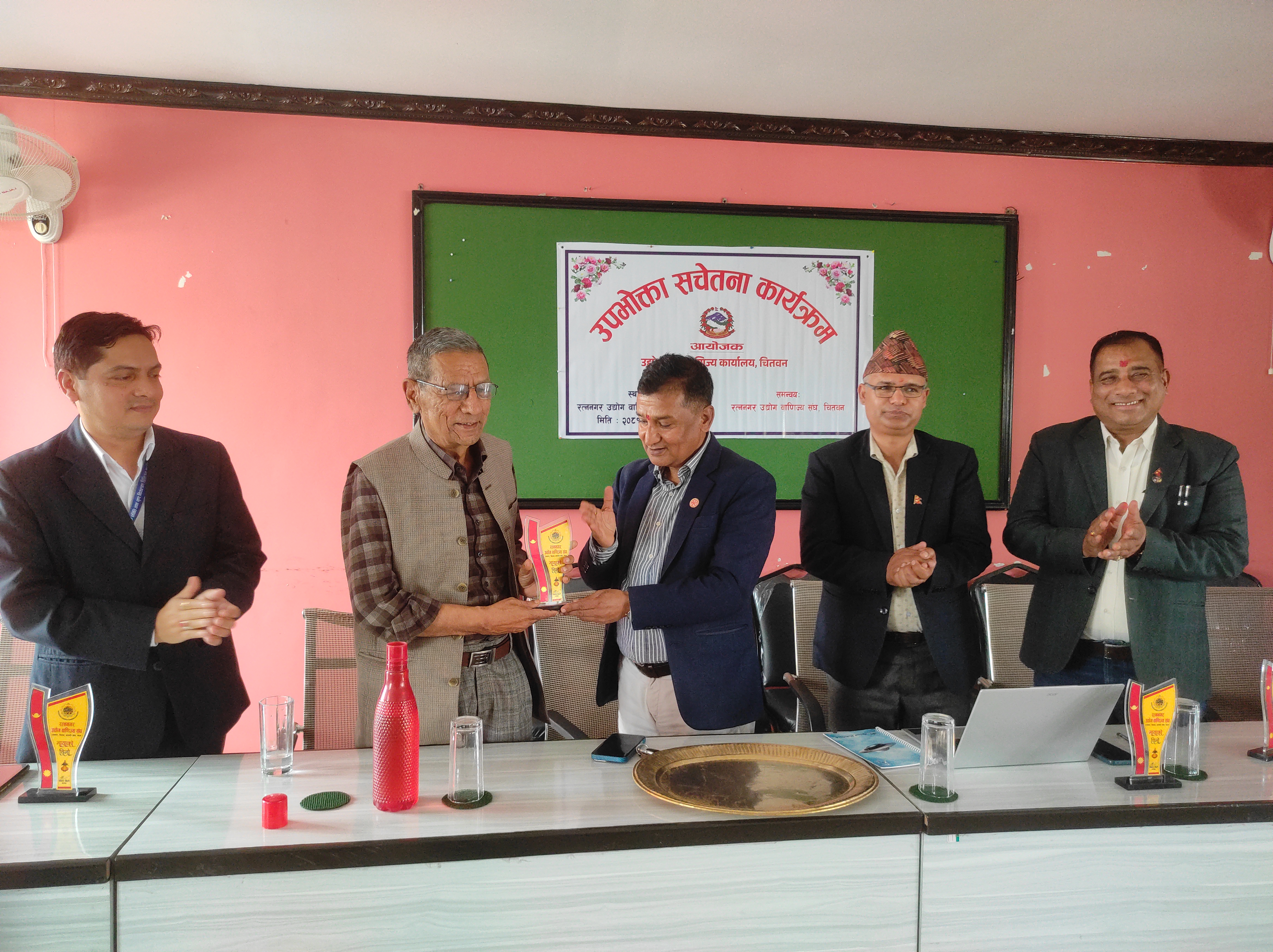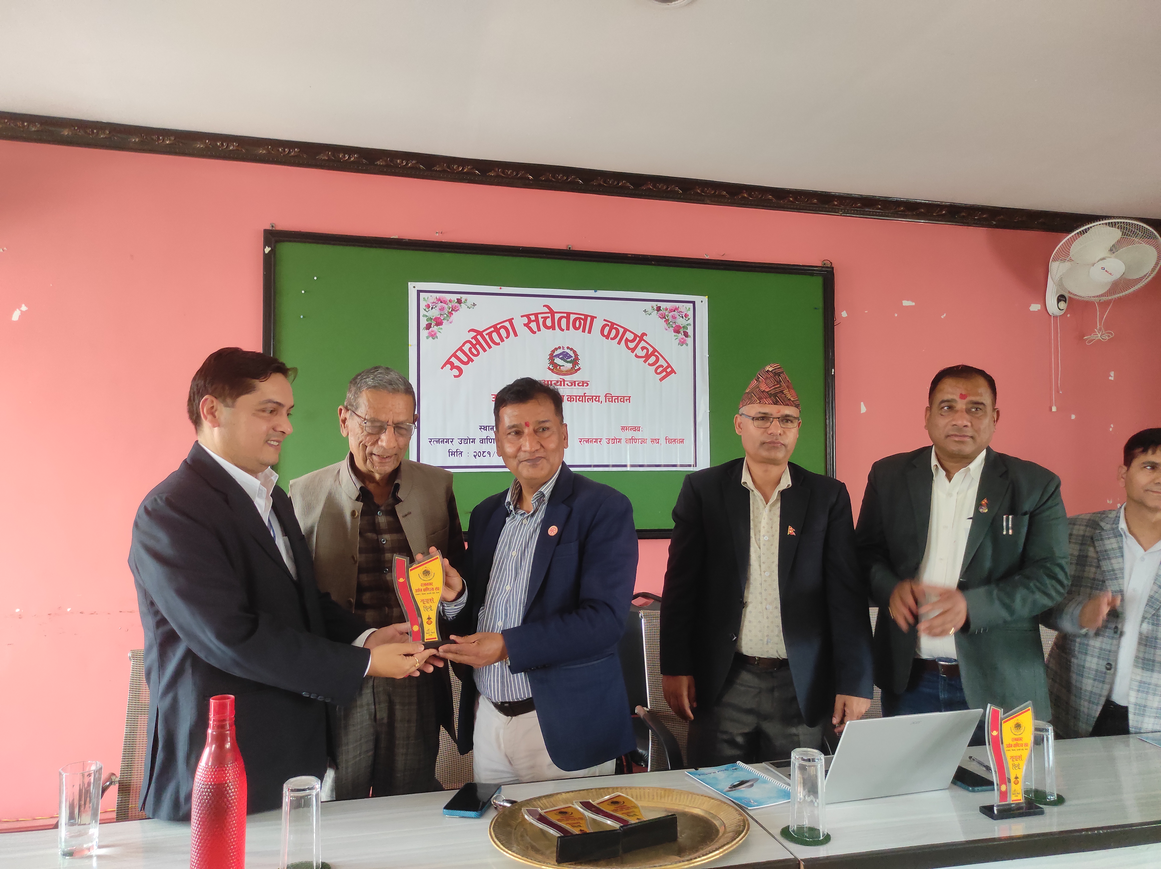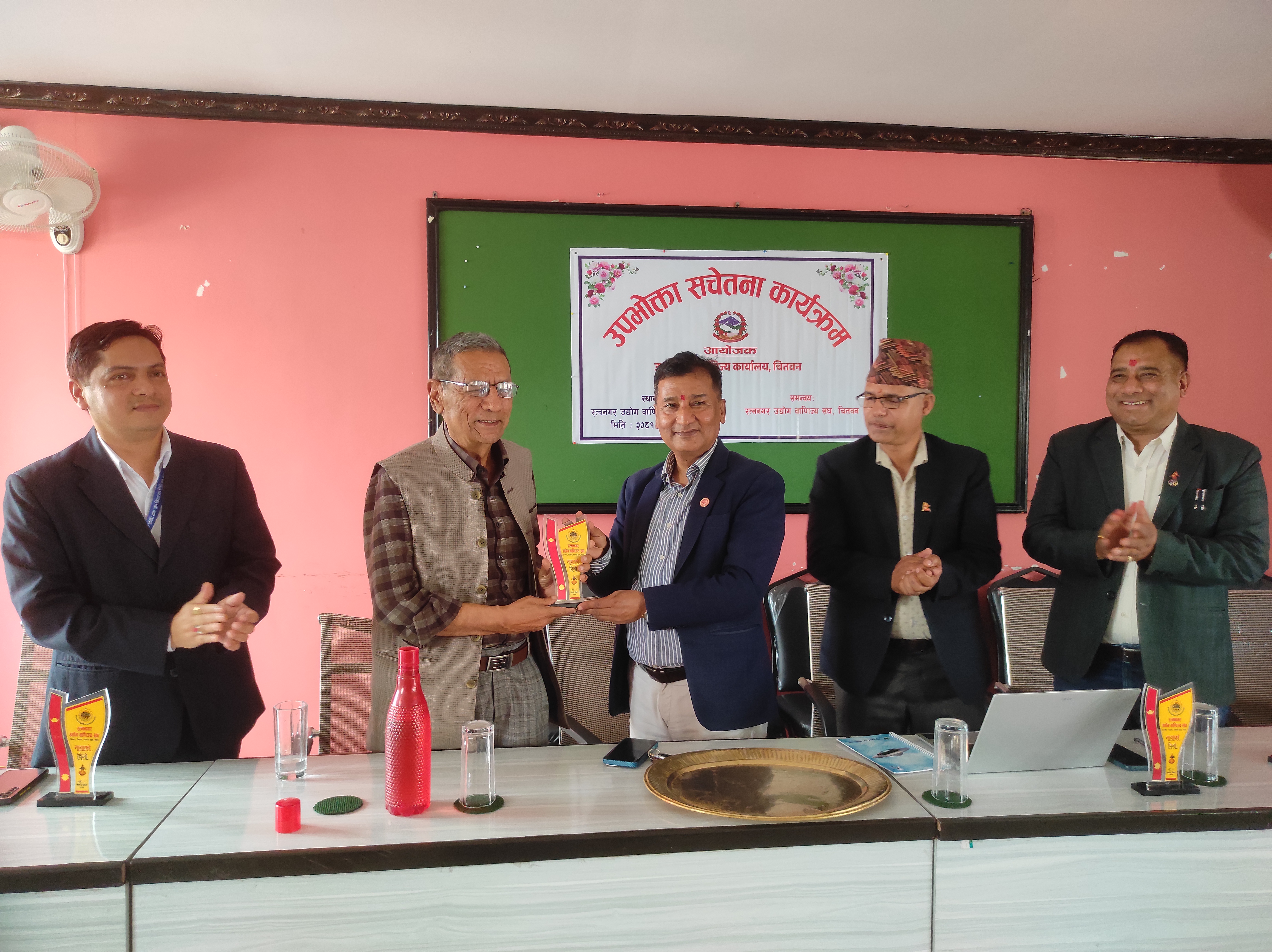 २०८१ साल फागुन २६ गते, सोमबार, रत्ननगर उद्योग वाणिज्य सङ्घको सभाहलमा उद्योग तथा वाणिज्य कार्यालय,चितवनका प्रमुख उद्योग अधिकृत विनोद पौडेलज्यूको अध्यक्षतामा तथा रत्ननगर उद्योग वाणिज्य सङ्घ,चितवनको समन्वयमा उपभोक्ता सचेतना कार्यक्रम सफलतापूर्वक सम्पन्न भयो।
