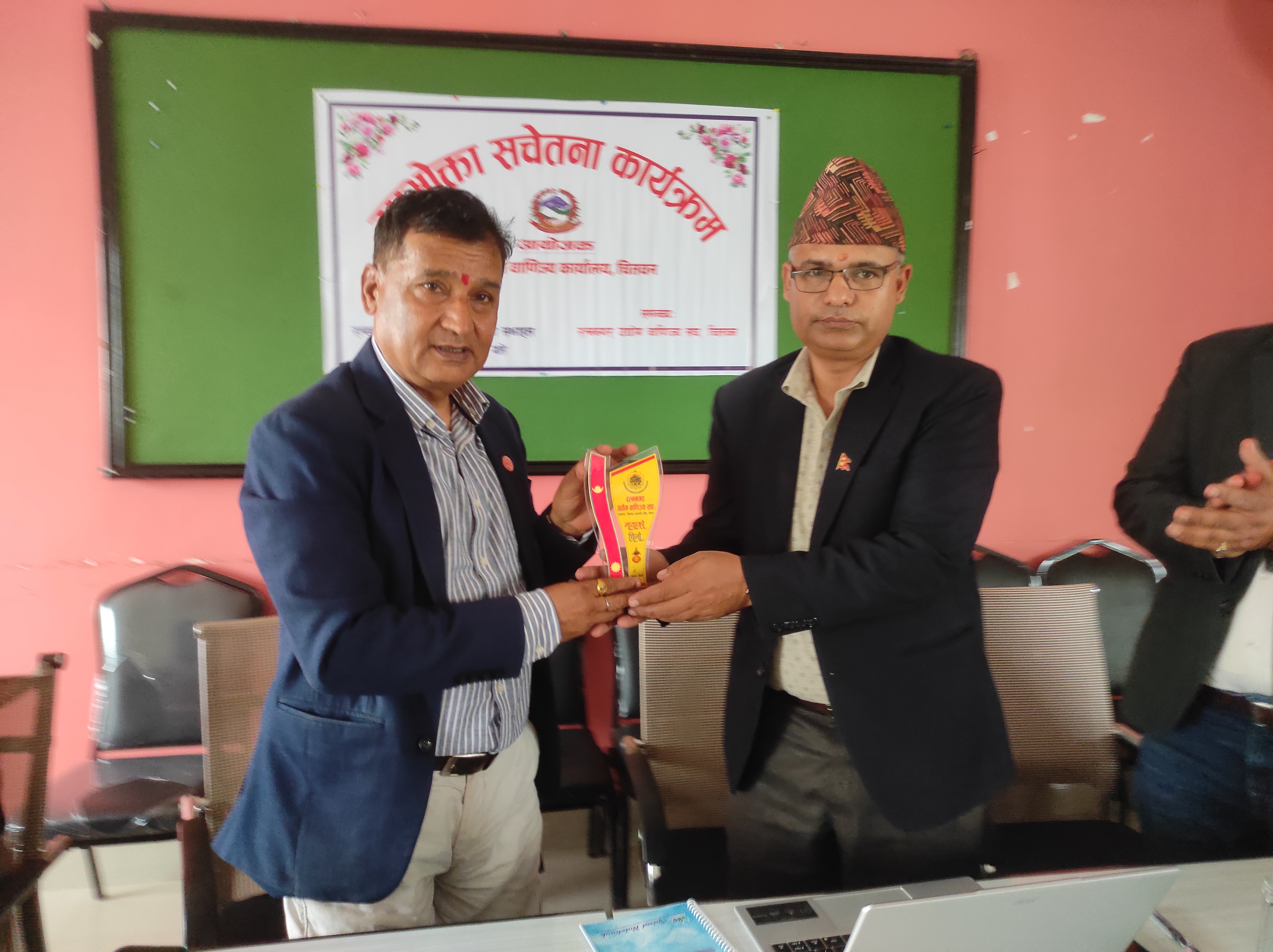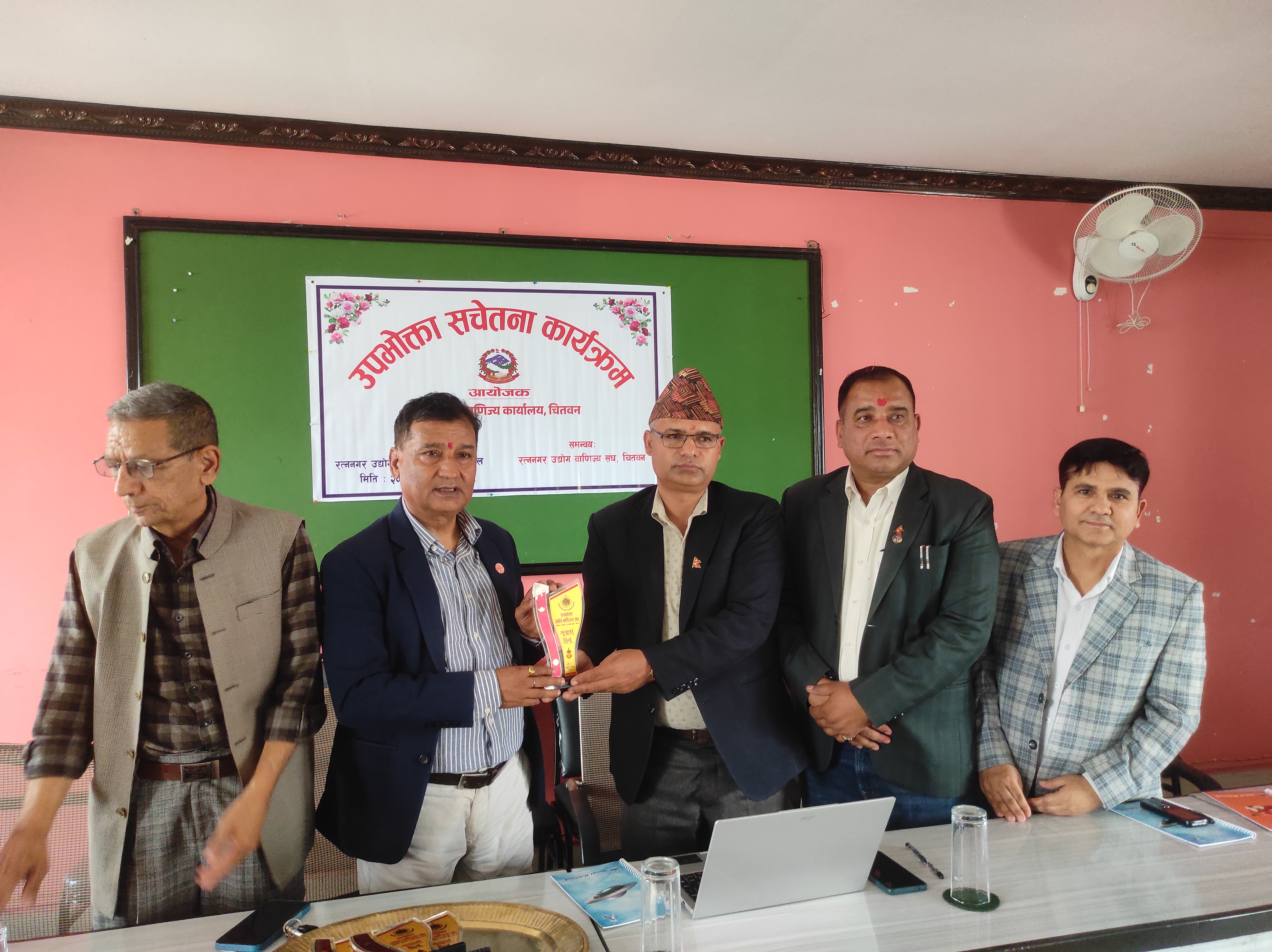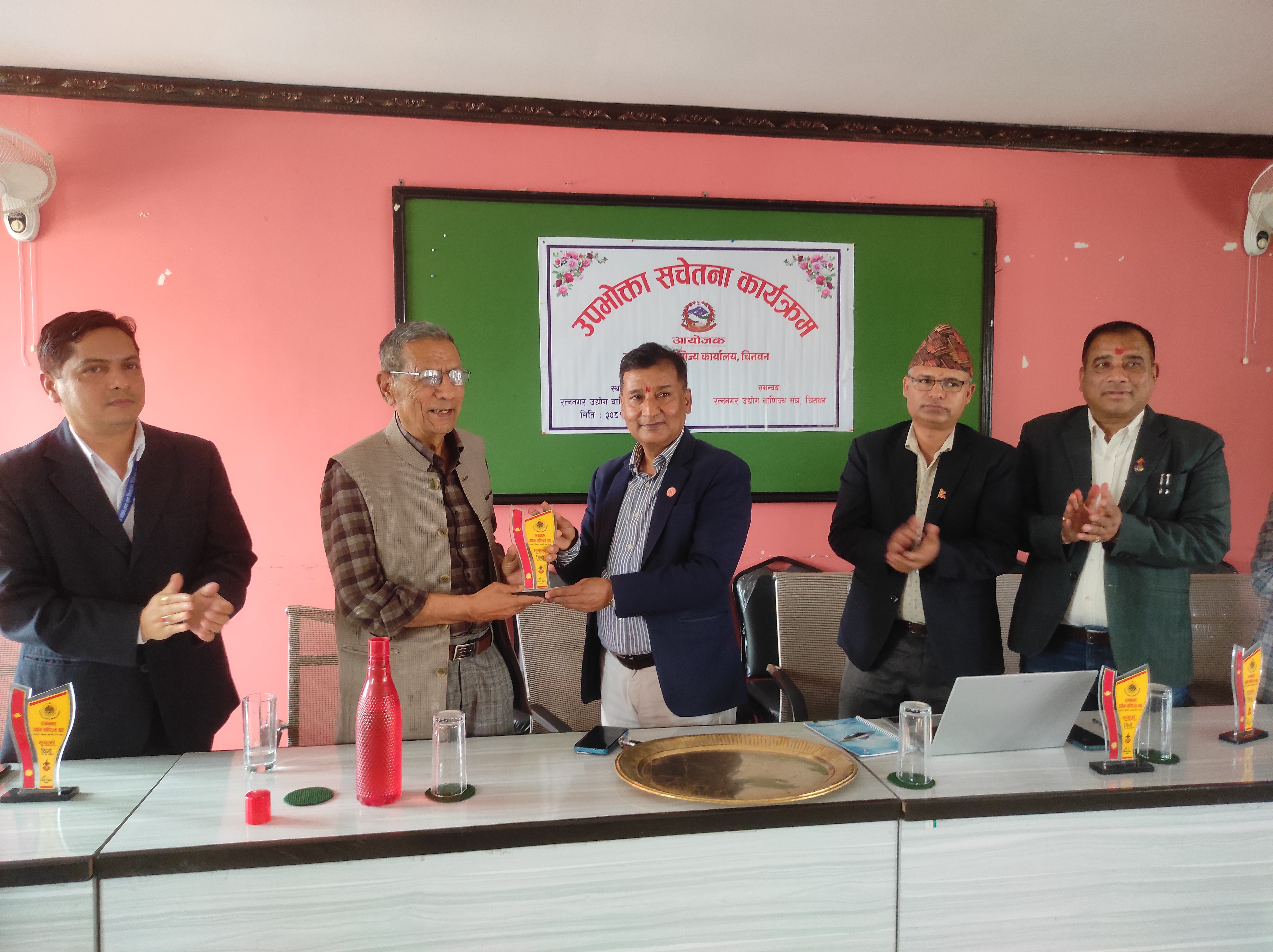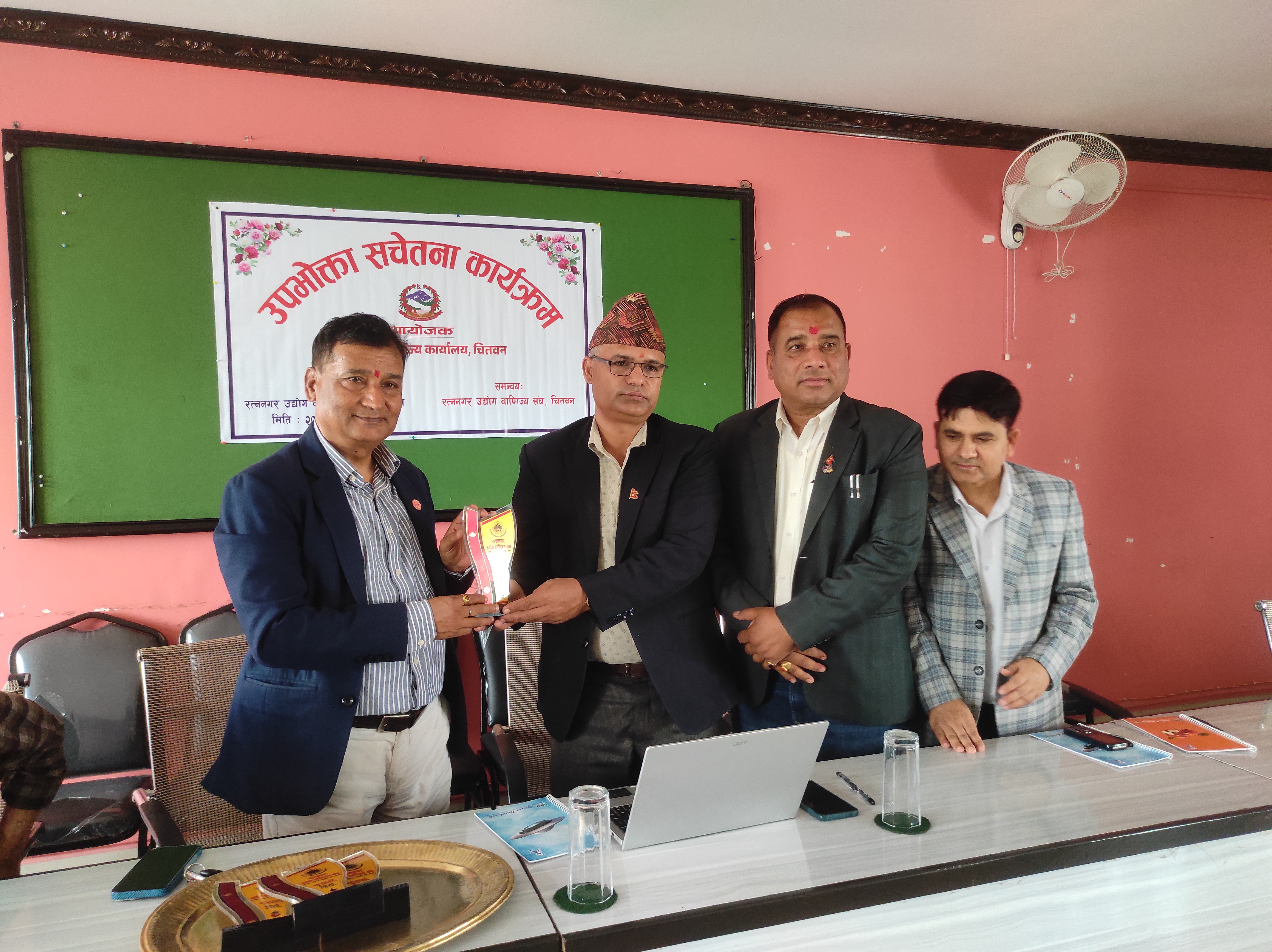 २०८१ साल फागुन २६ गते, सोमबार, रत्ननगर उद्योग वाणिज्य सङ्घको सभाहलमा उद्योग तथा वाणिज्य कार्यालय,चितवनका प्रमुख उद्योग अधिकृत विनोद पौडेलज्यूको अध्यक्षतामा तथा रत्ननगर उद्योग वाणिज्य सङ्घ,चितवनको समन्वयमा उपभोक्ता सचेतना कार्यक्रम सफलतापूर्वक सम्पन्न भयो।