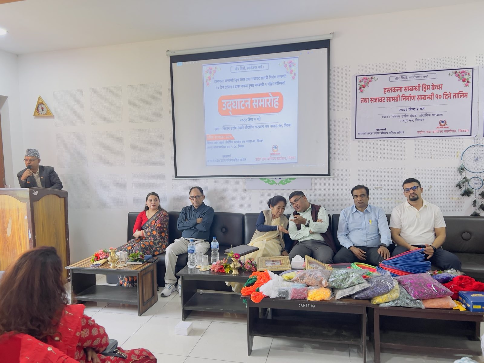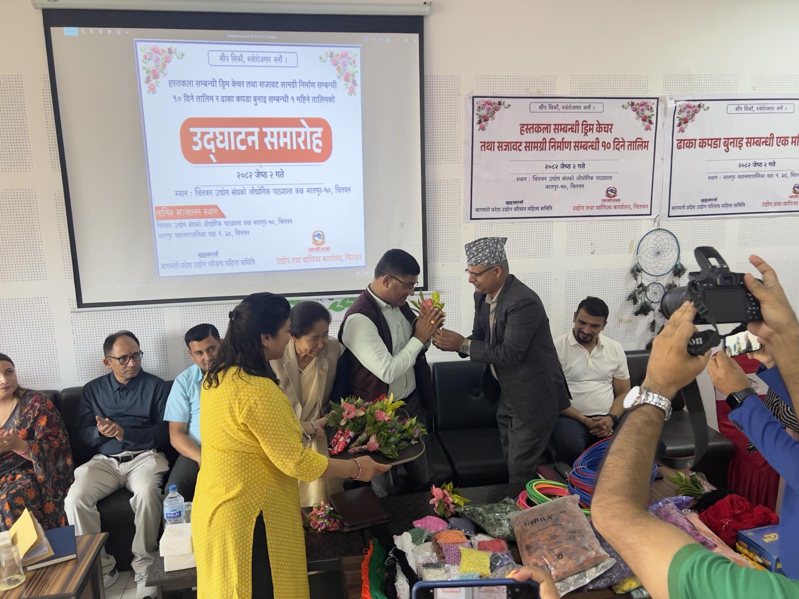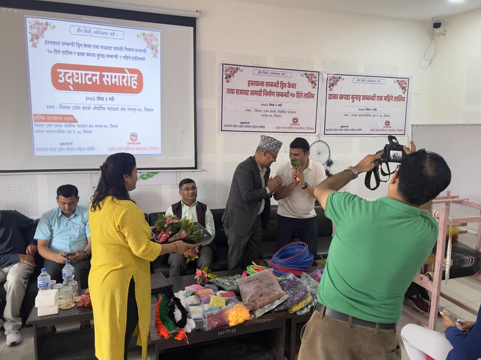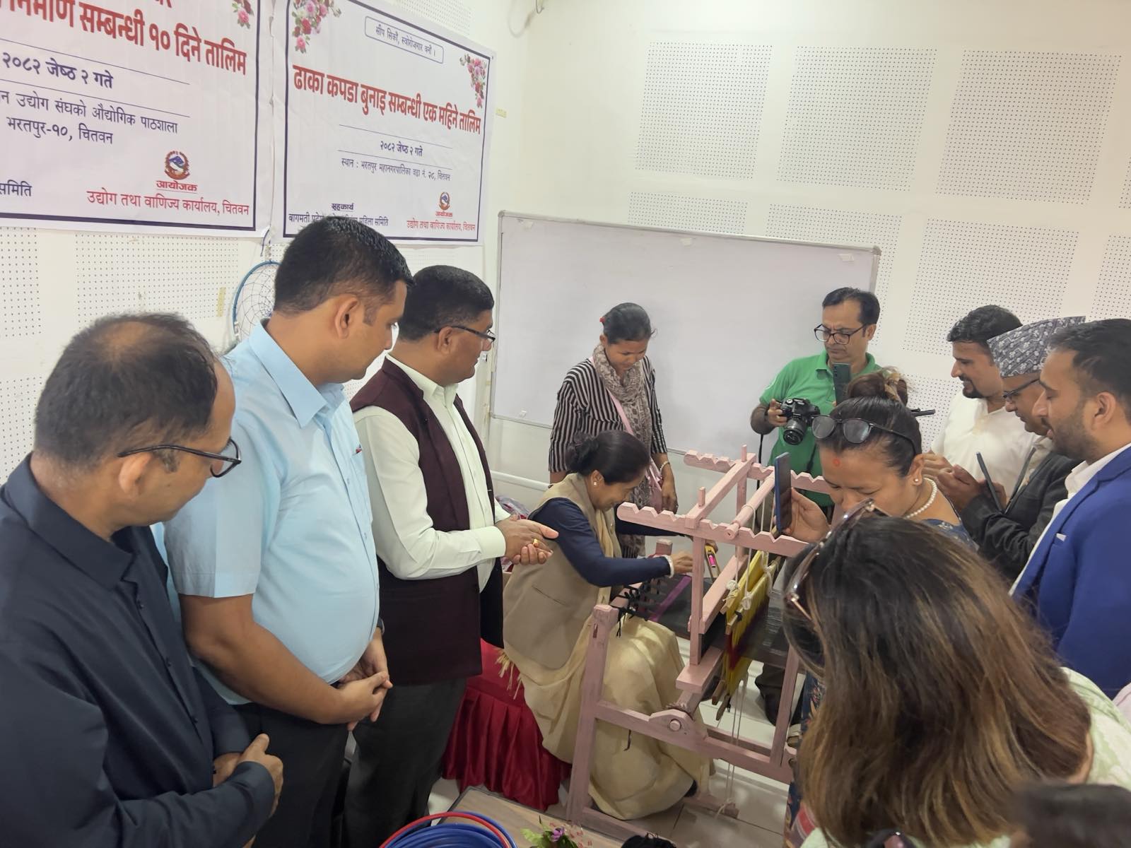 मिति २०८२ जेठ २ गते भरतपुर–१० मा एक महिने ढाका बुनाई र १० दिने ड्रिम केचर तालिमको उद्घाटन कार्यक्रम माननीय मन्त्री श्री शुकमाया तामाङज्यूको प्रमुख आतिथ्यतामा र प्रमुख उद्योग अधिकृत श्री बिनोद पौडेलज्यूको अध्यक्षतामा सम्पन्न भयो।