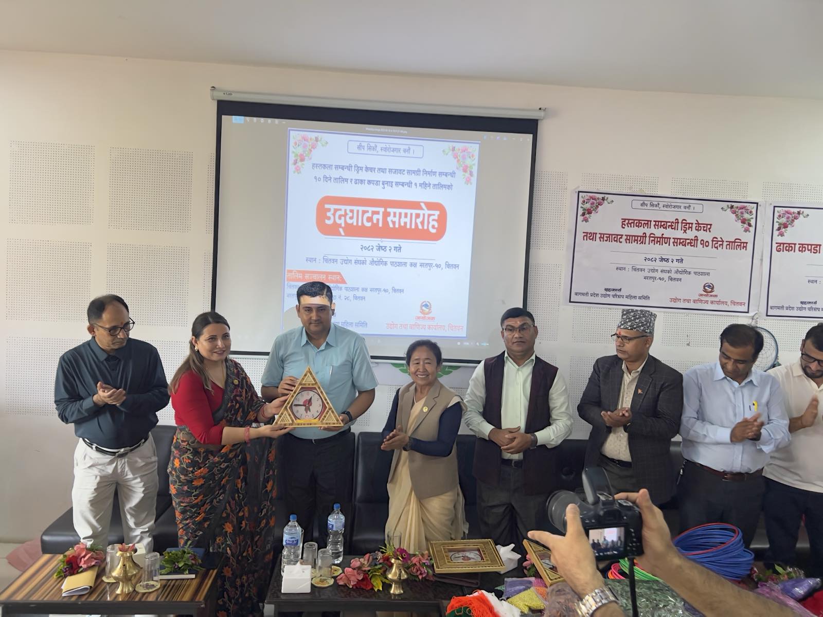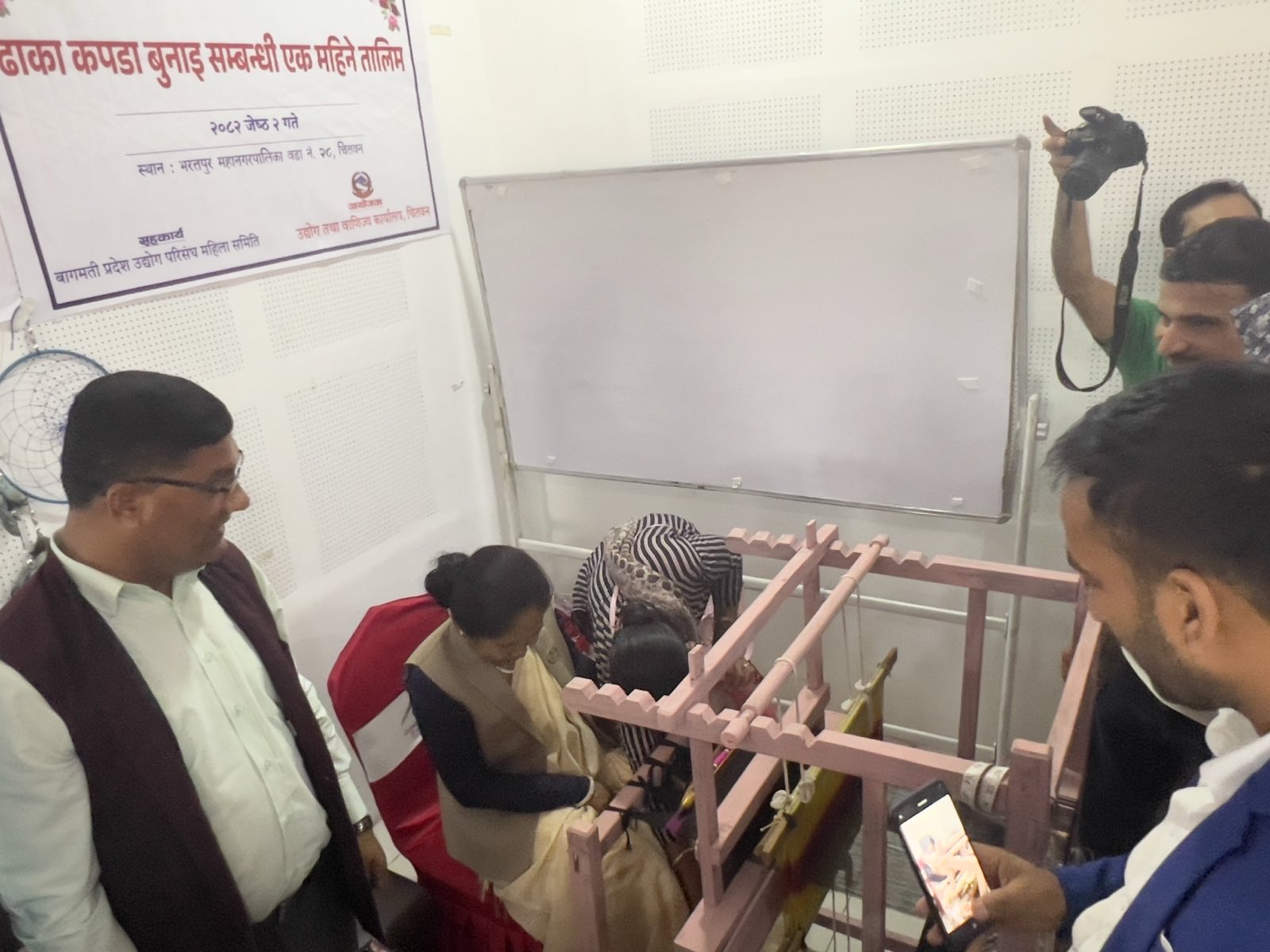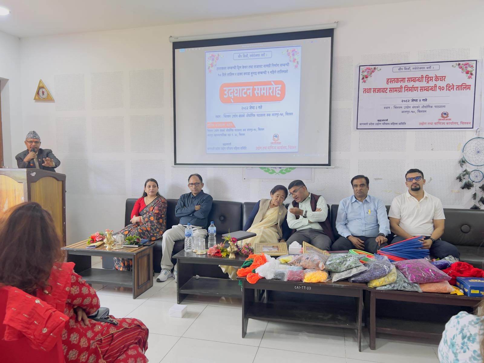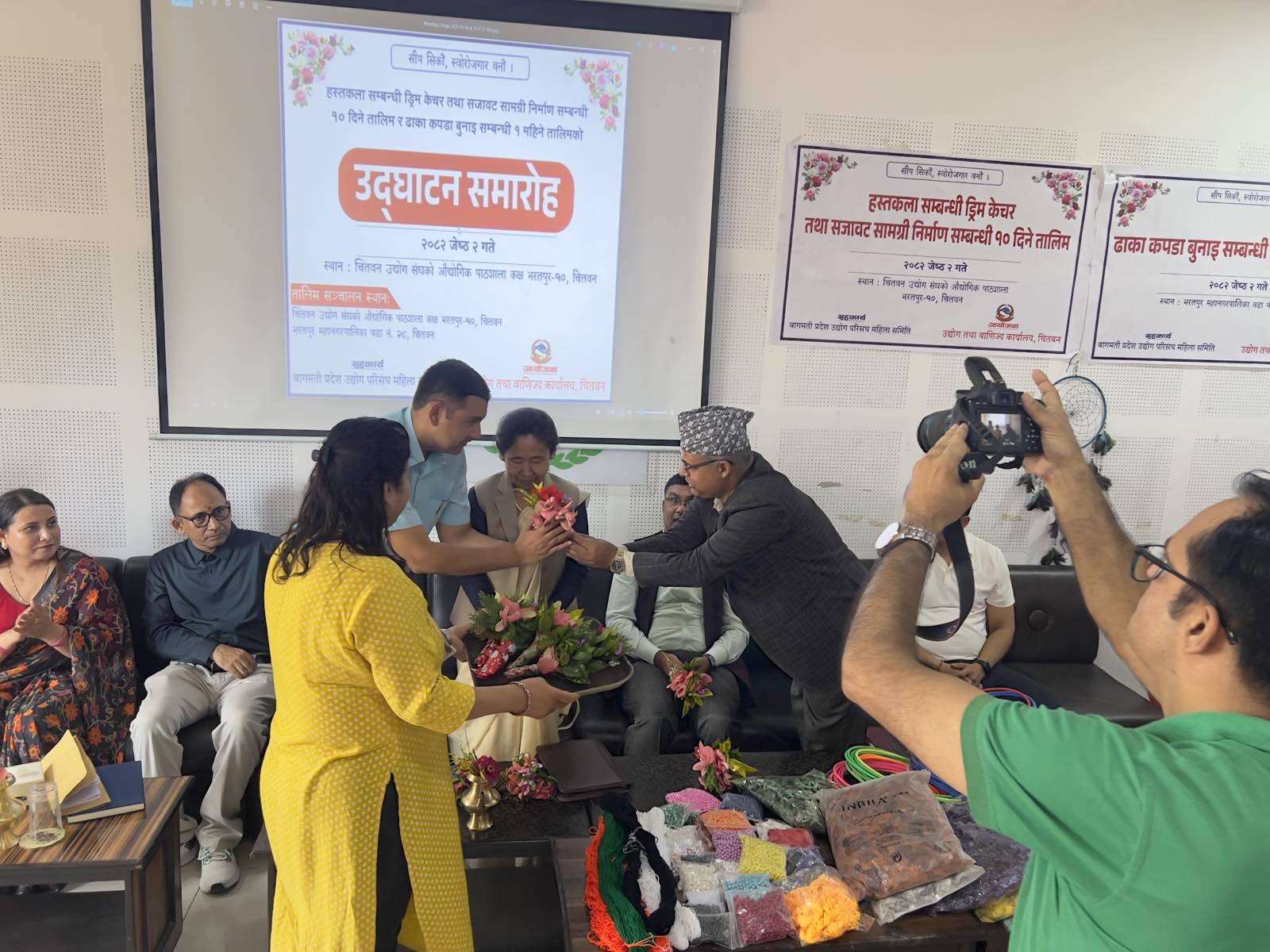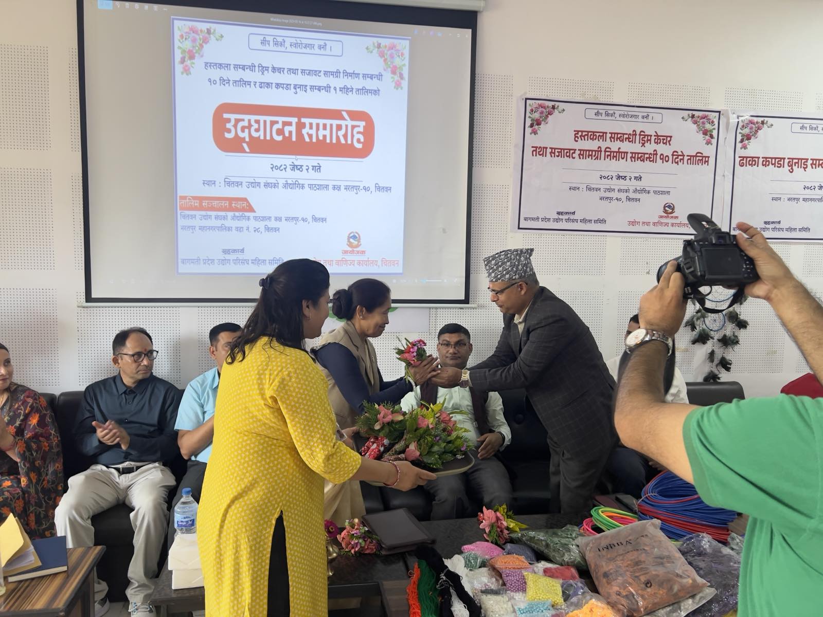 मिति २०८२ जेठ २ गते भरतपुर–१० मा एक महिने ढाका बुनाई र १० दिने ड्रिम केचर तालिमको उद्घाटन कार्यक्रम माननीय मन्त्री श्री शुकमाया तामाङज्यूको प्रमुख आतिथ्यतामा र प्रमुख उद्योग अधिकृत श्री बिनोद पौडेलज्यूको अध्यक्षतामा सम्पन्न भयो।