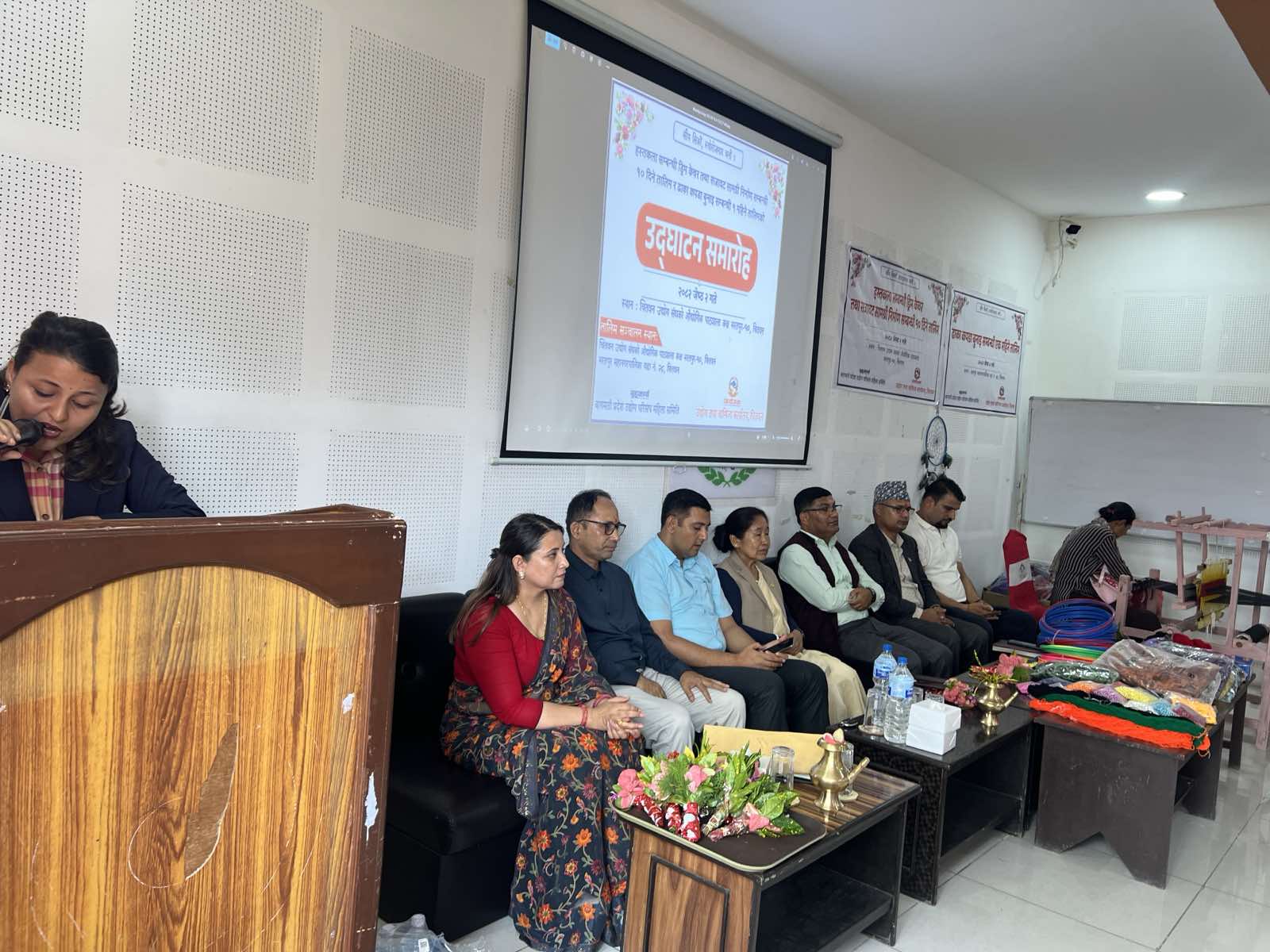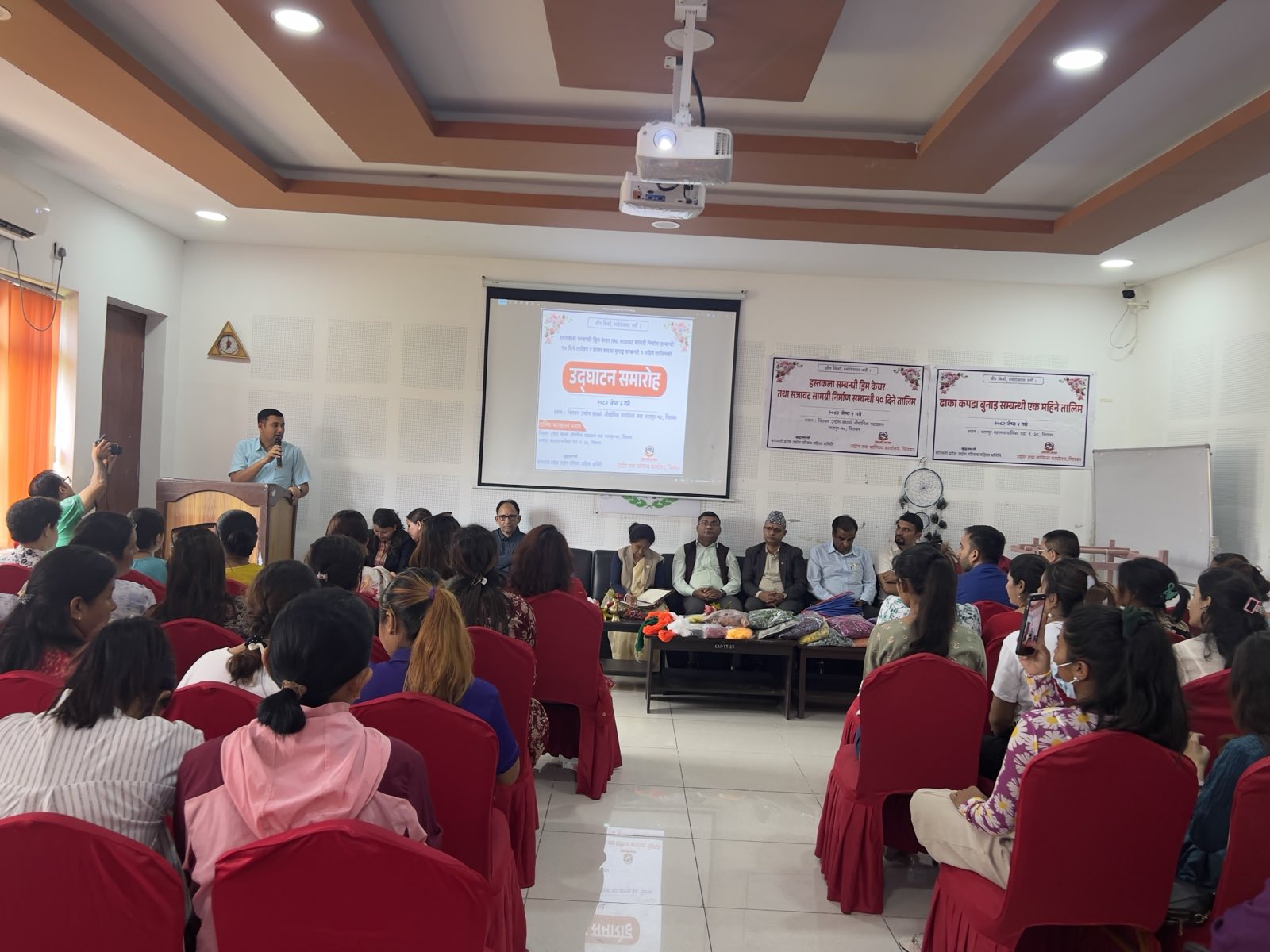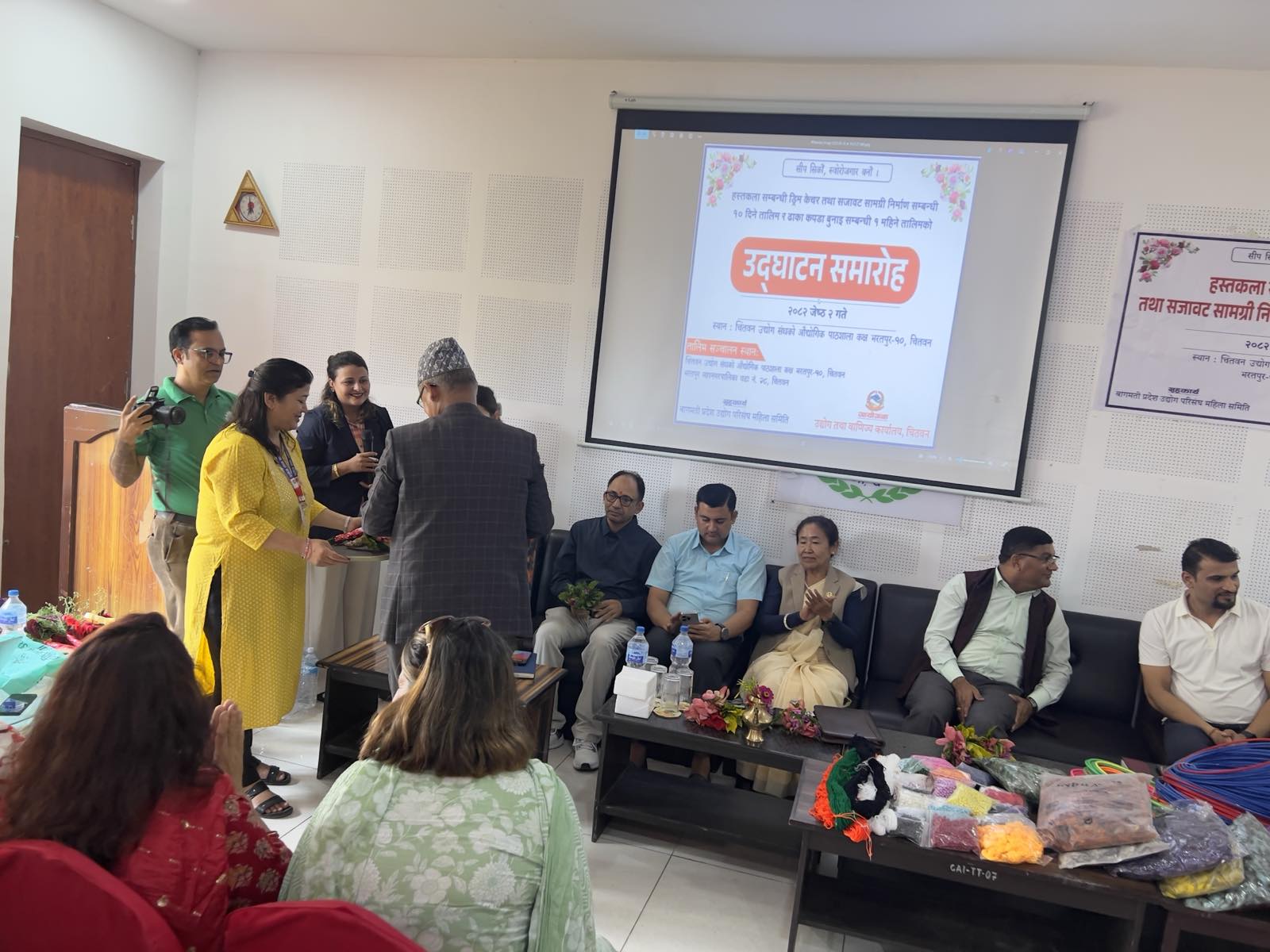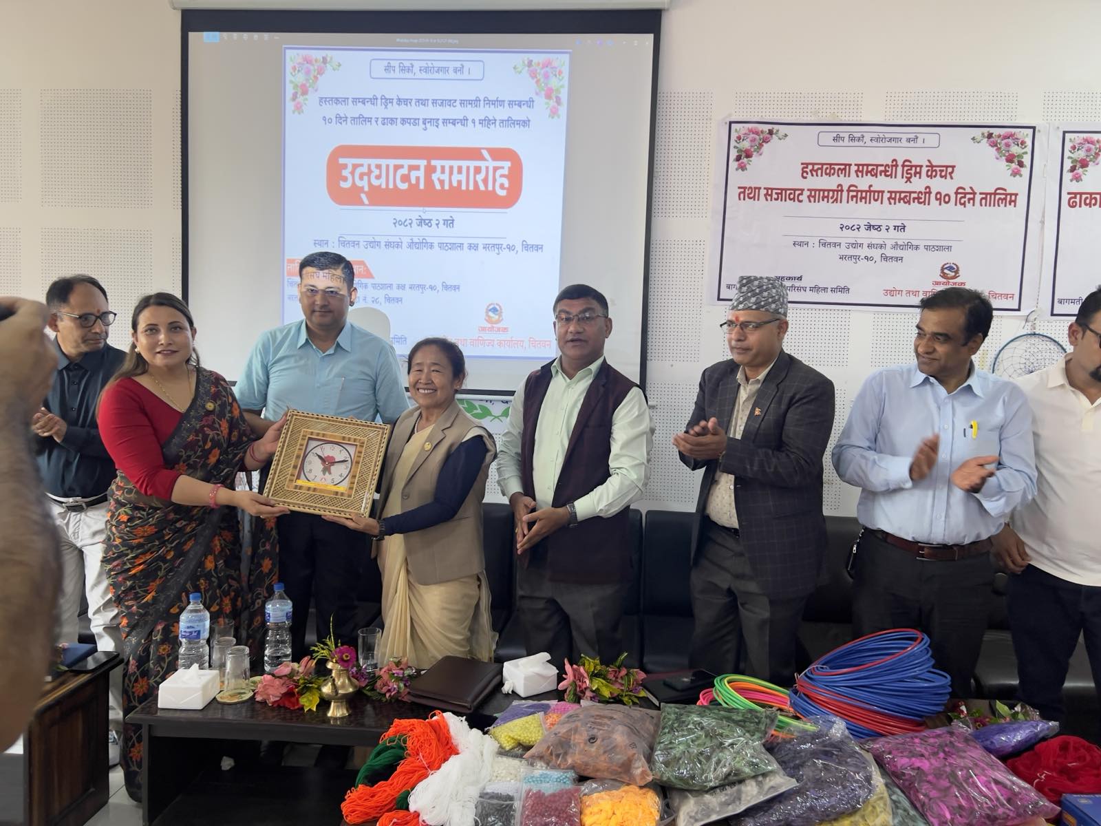 मिति २०८२ जेठ २ गते भरतपुर–१० मा एक महिने ढाका बुनाई र १० दिने ड्रिम केचर तालिमको उद्घाटन कार्यक्रम माननीय मन्त्री श्री शुकमाया तामाङज्यूको प्रमुख आतिथ्यतामा र प्रमुख उद्योग अधिकृत श्री बिनोद पौडेलज्यूको अध्यक्षतामा सम्पन्न भयो।