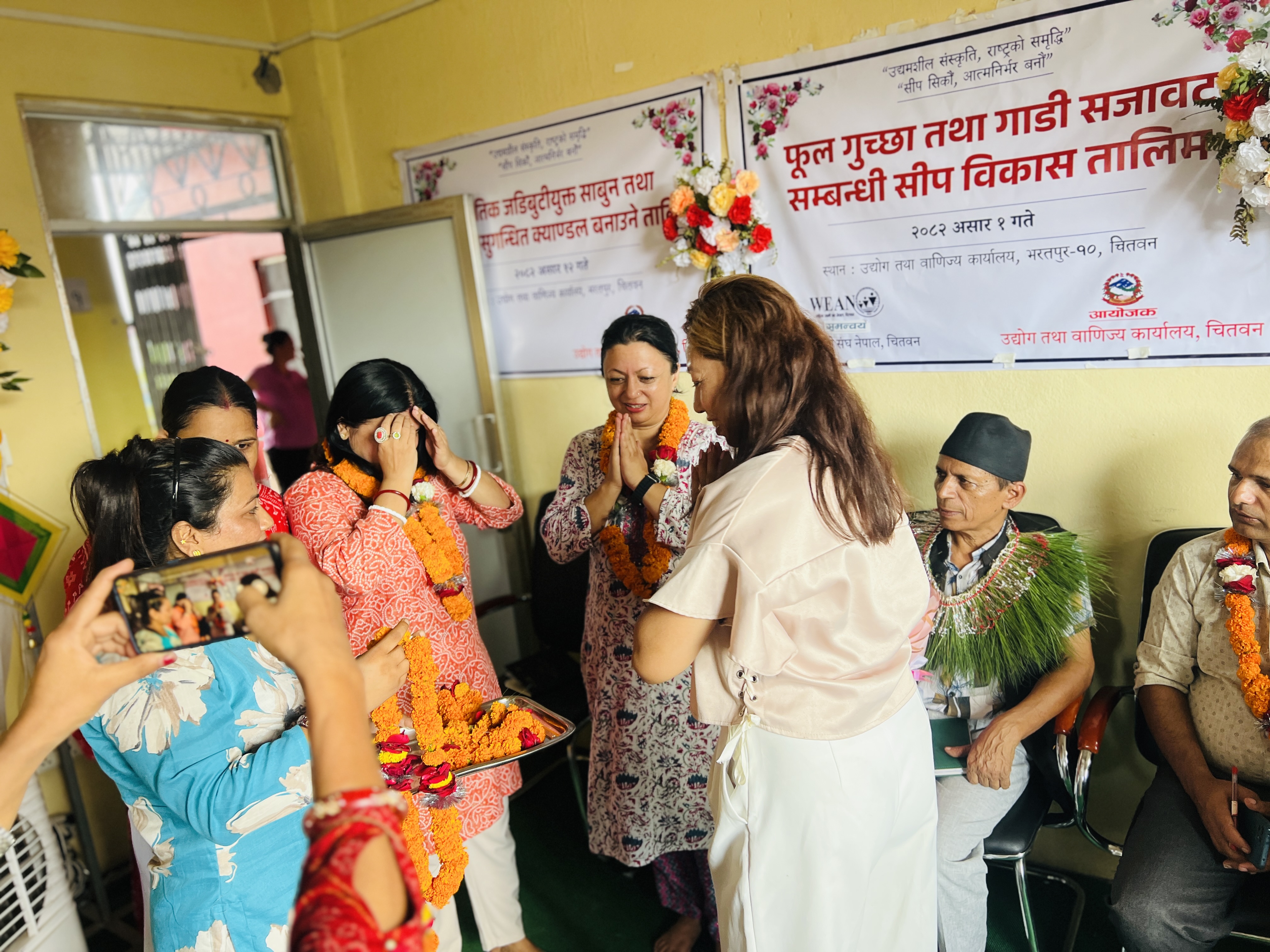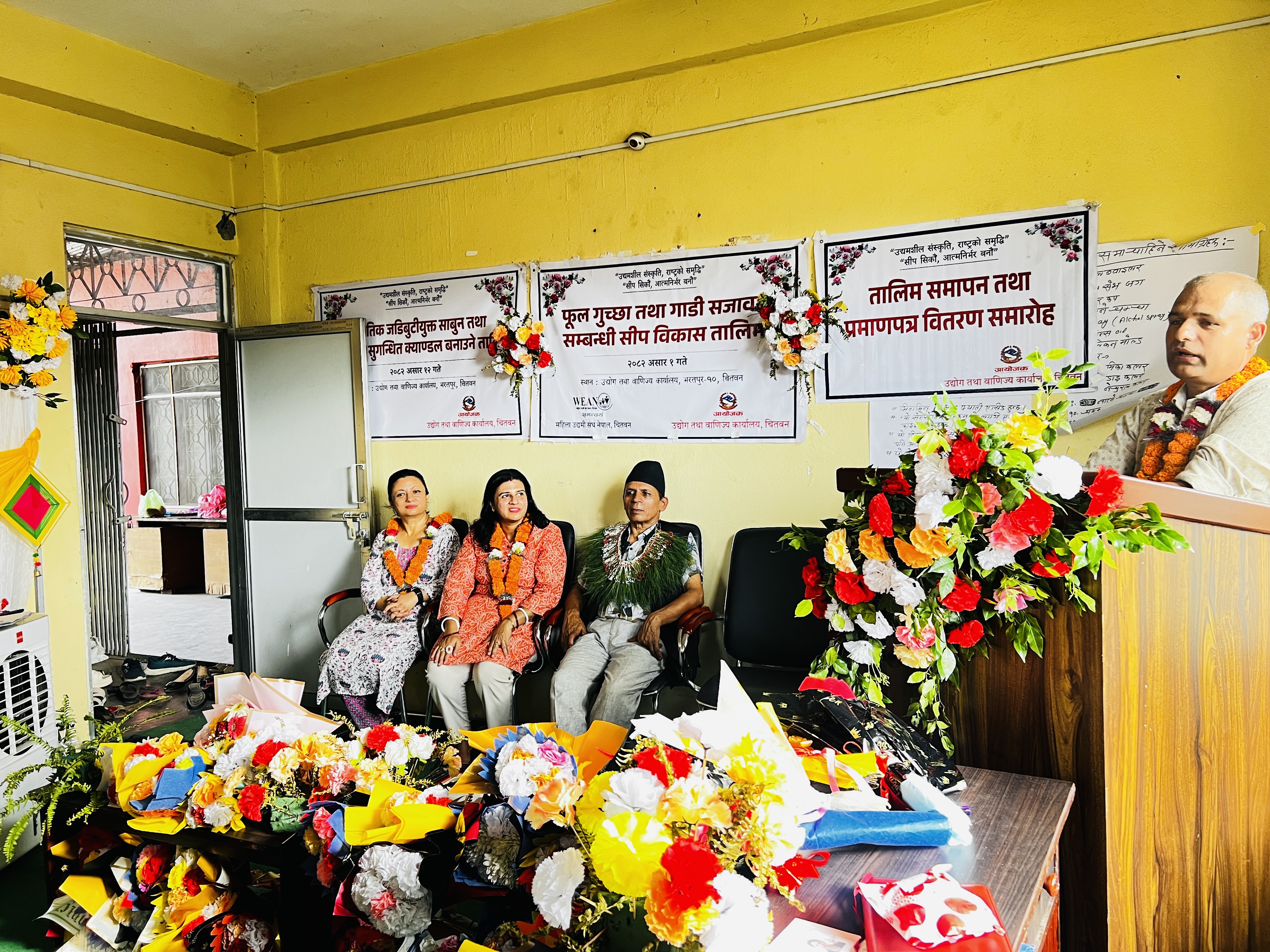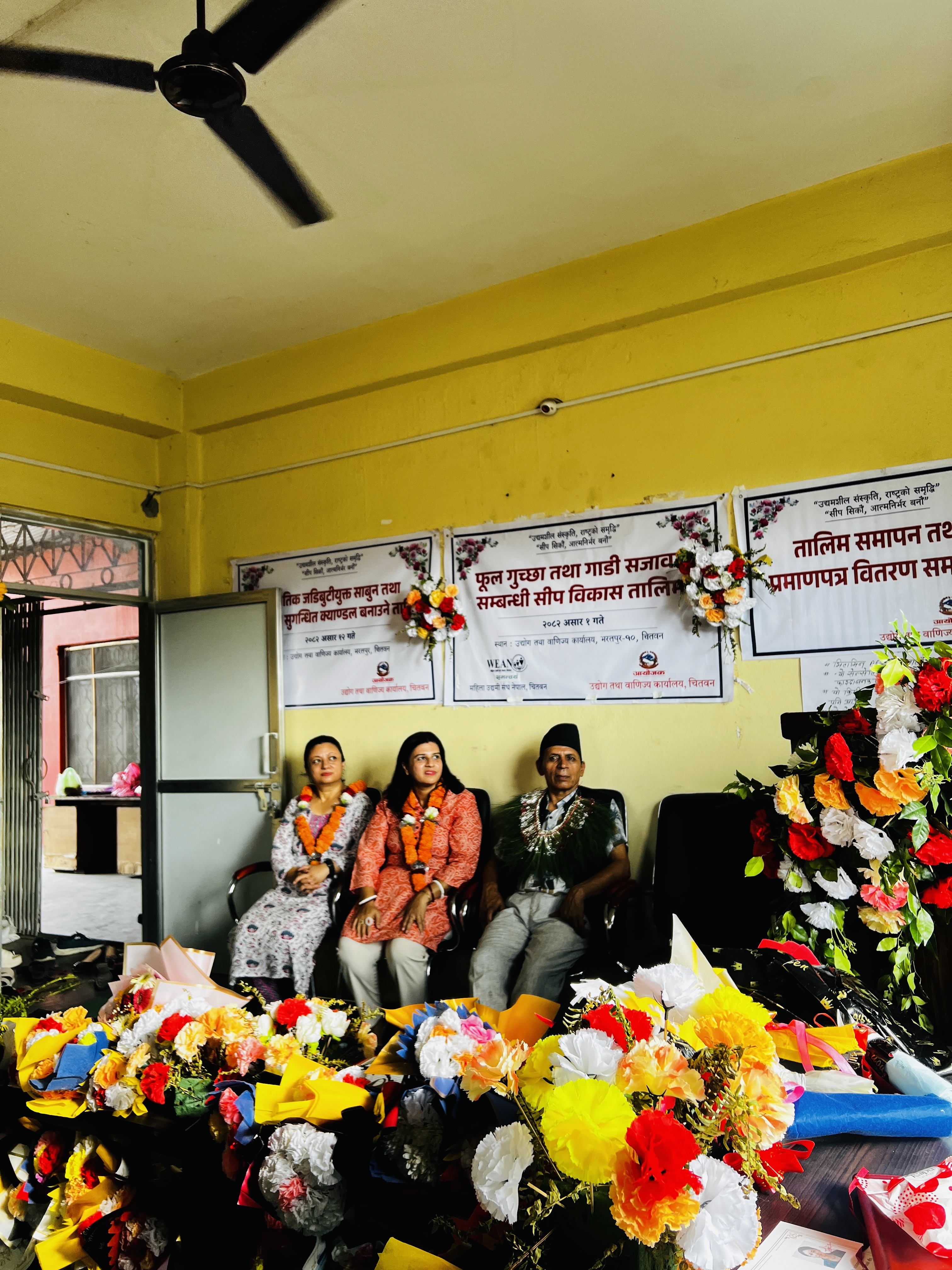 आ.व. 081-082 मा मिति 2082-03-01 देखि 2082-03-13 सम्म फूल गुच्छा तथा गाडी सजावट सम्बन्धी सिप विकास तालिम भरतपुर महानगरपालिका वडा नं. 10, चितवनमा सञ्चालन भएका केही तस्विरहरू।