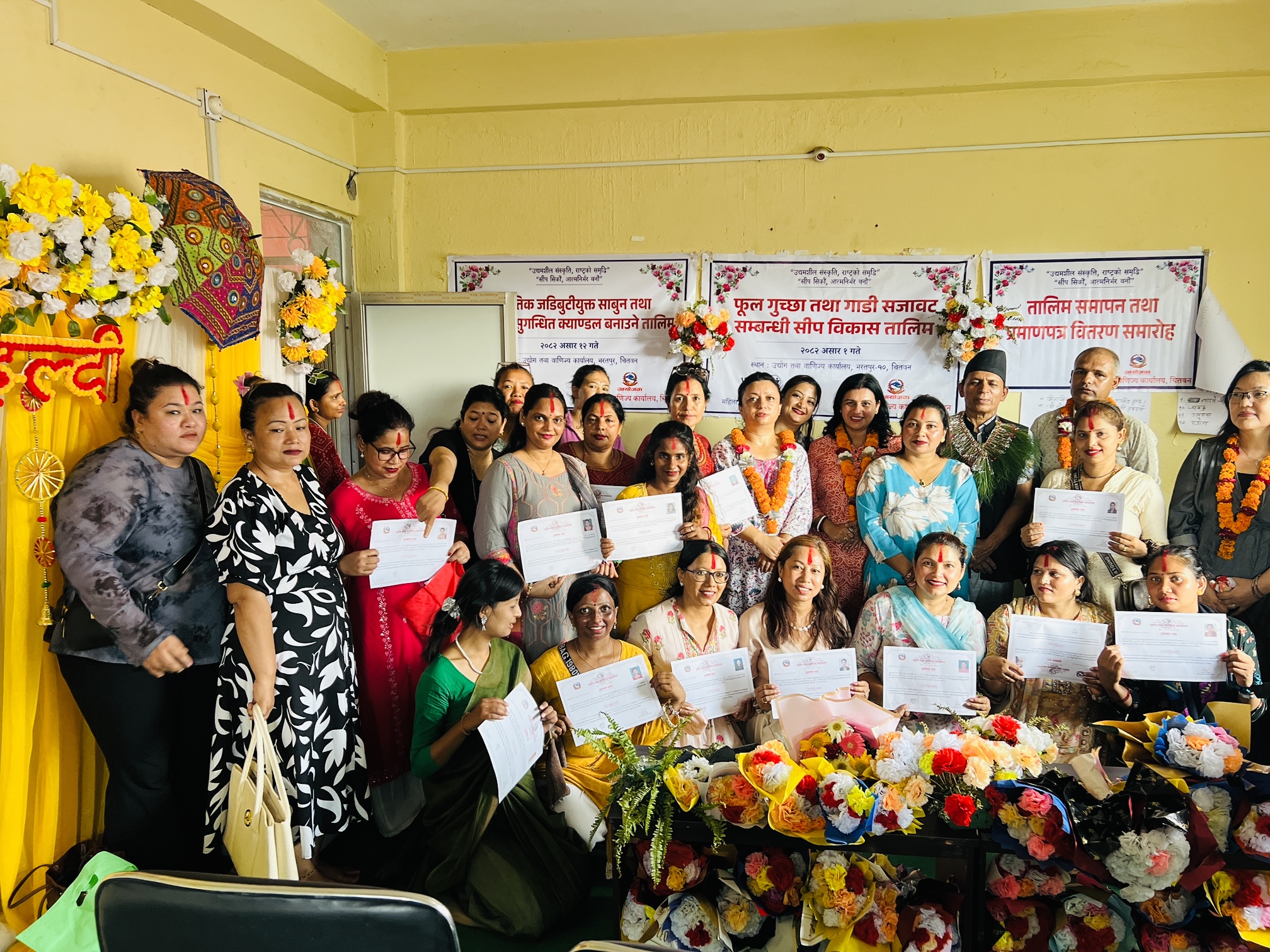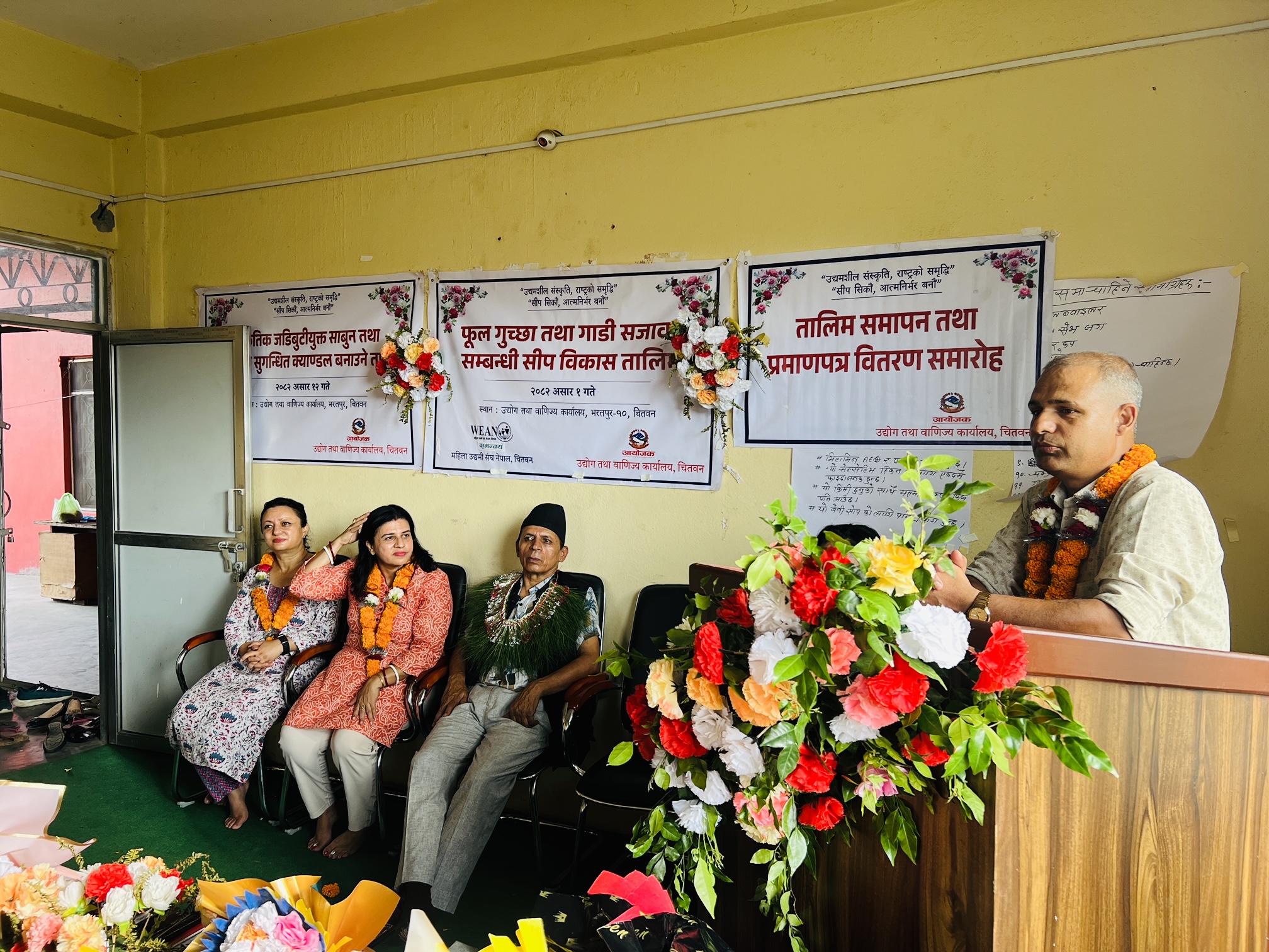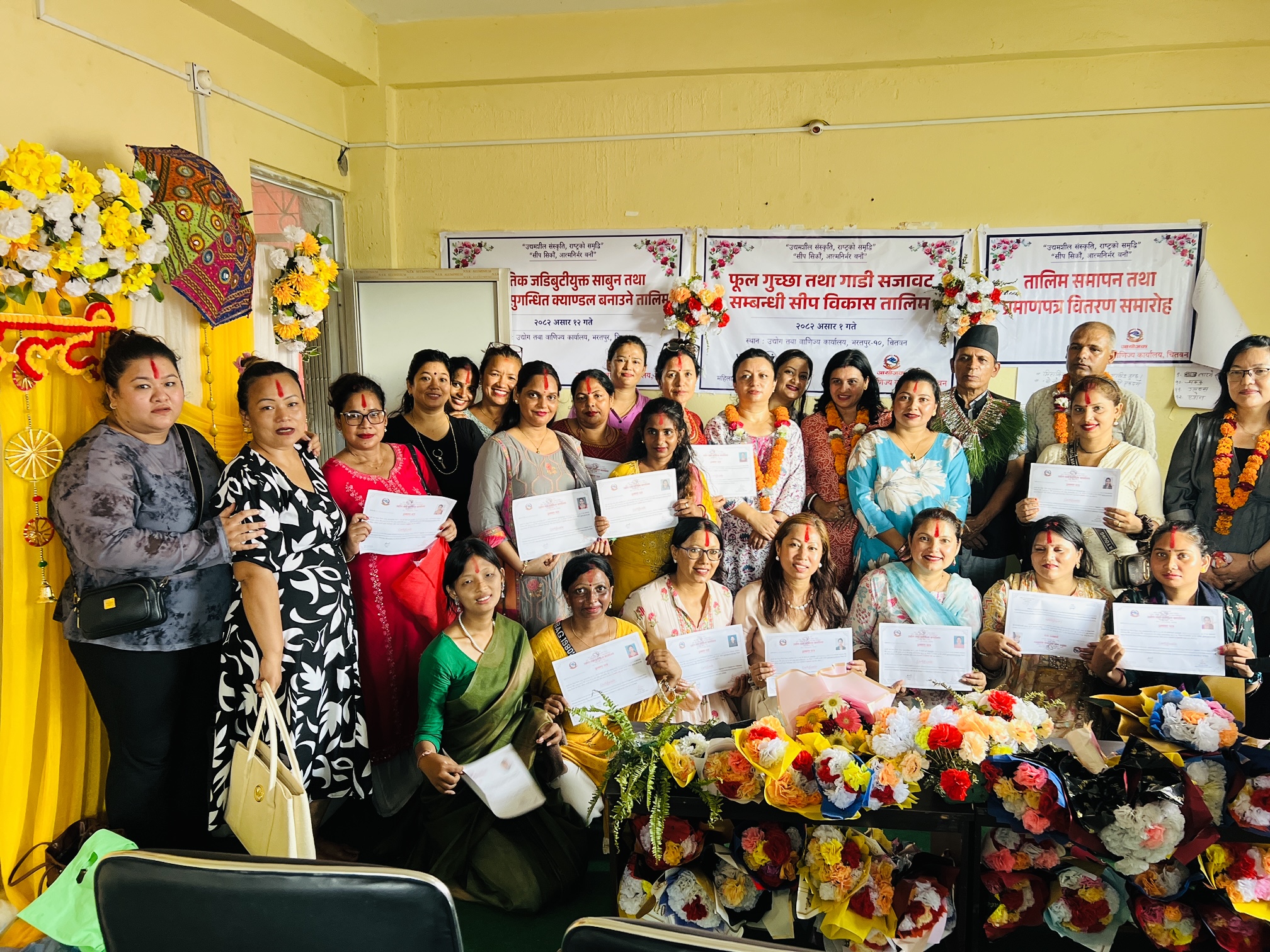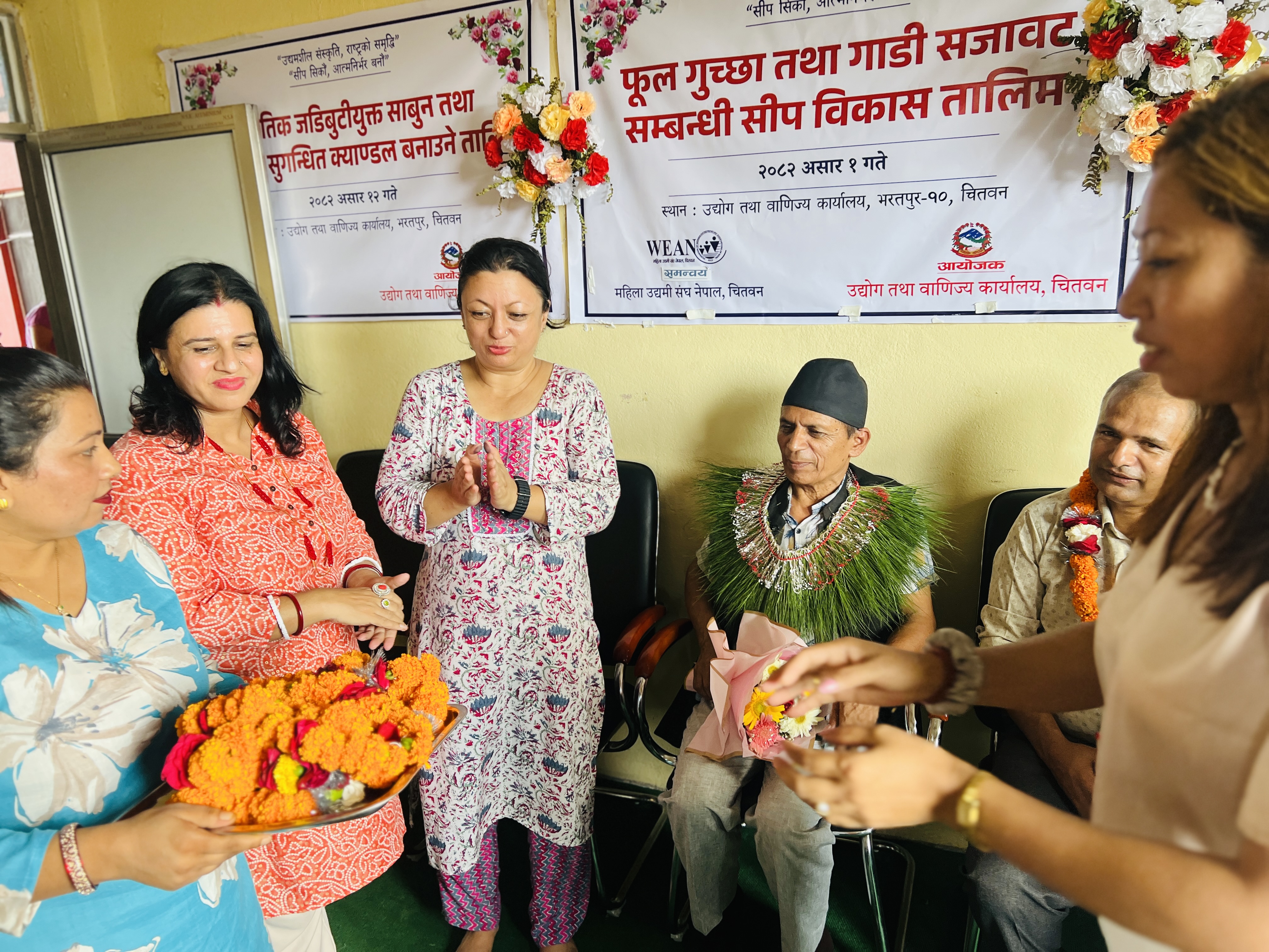 आ.व. 081-082 मा मिति 2082-03-01 देखि 2082-03-13 सम्म फूल गुच्छा तथा गाडी सजावट सम्बन्धी सिप विकास तालिम भरतपुर महानगरपालिका वडा नं. 10, चितवनमा सञ्चालन भएका केही तस्विरहरू।
