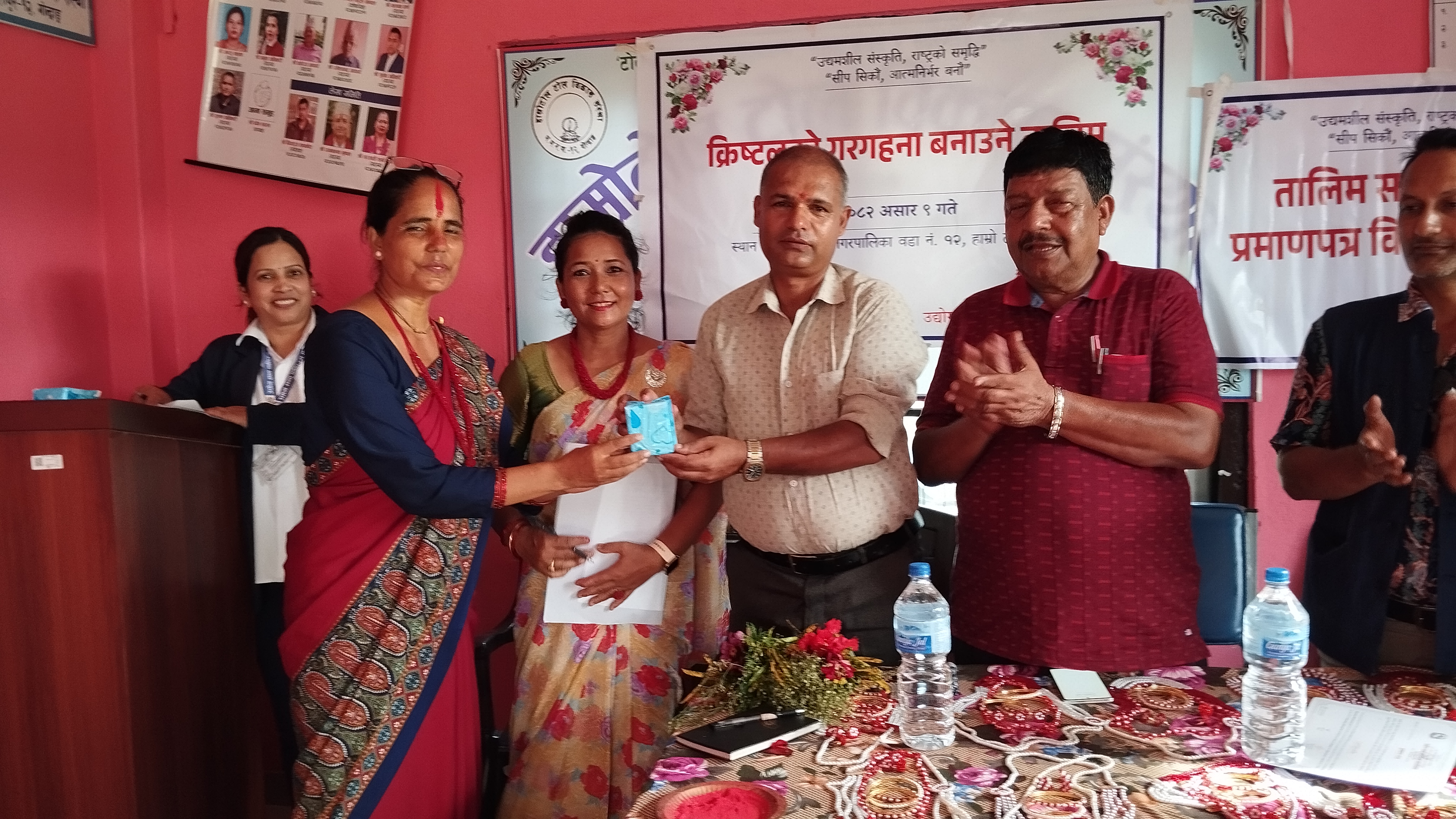 आ.व. 081-082 मा मिति 2082-03-09 देखि 2082-03-16 सम्म कृष्टलका गरगहना बनाउने तालिम भरतपुर महानगरपालिका वडा नं. 12, चितवनमा सञ्चालन भएका केही तस्विरहरू।