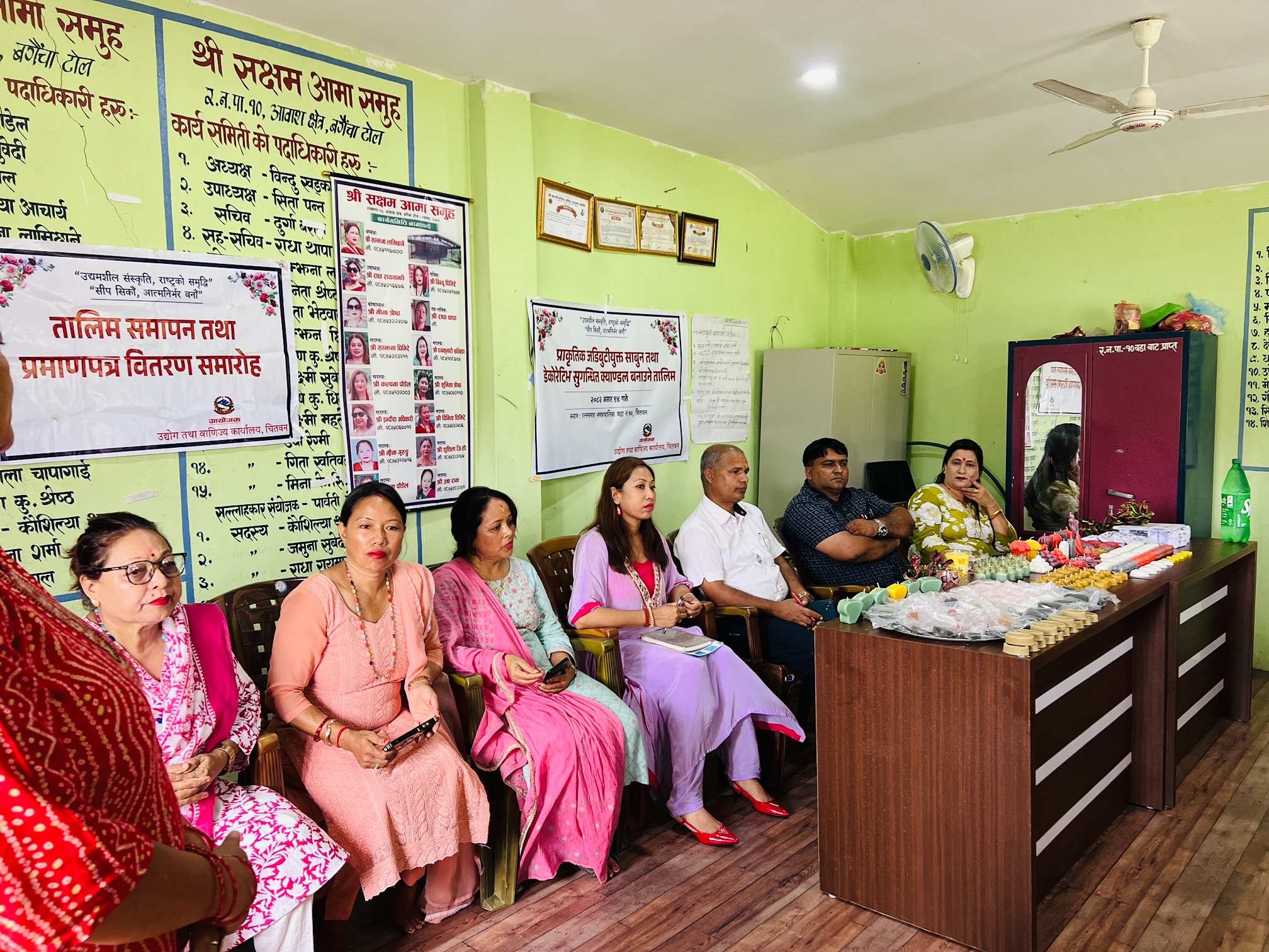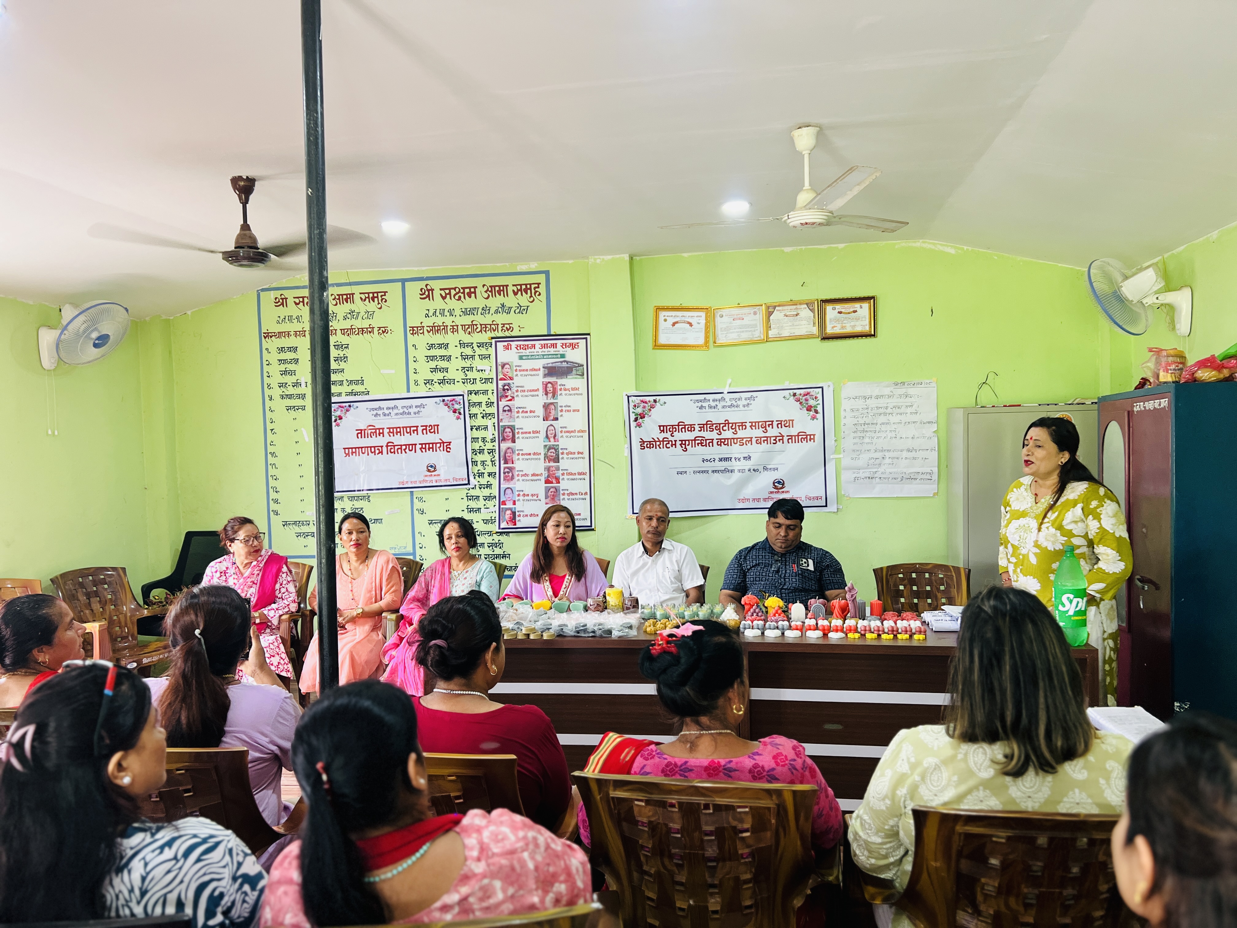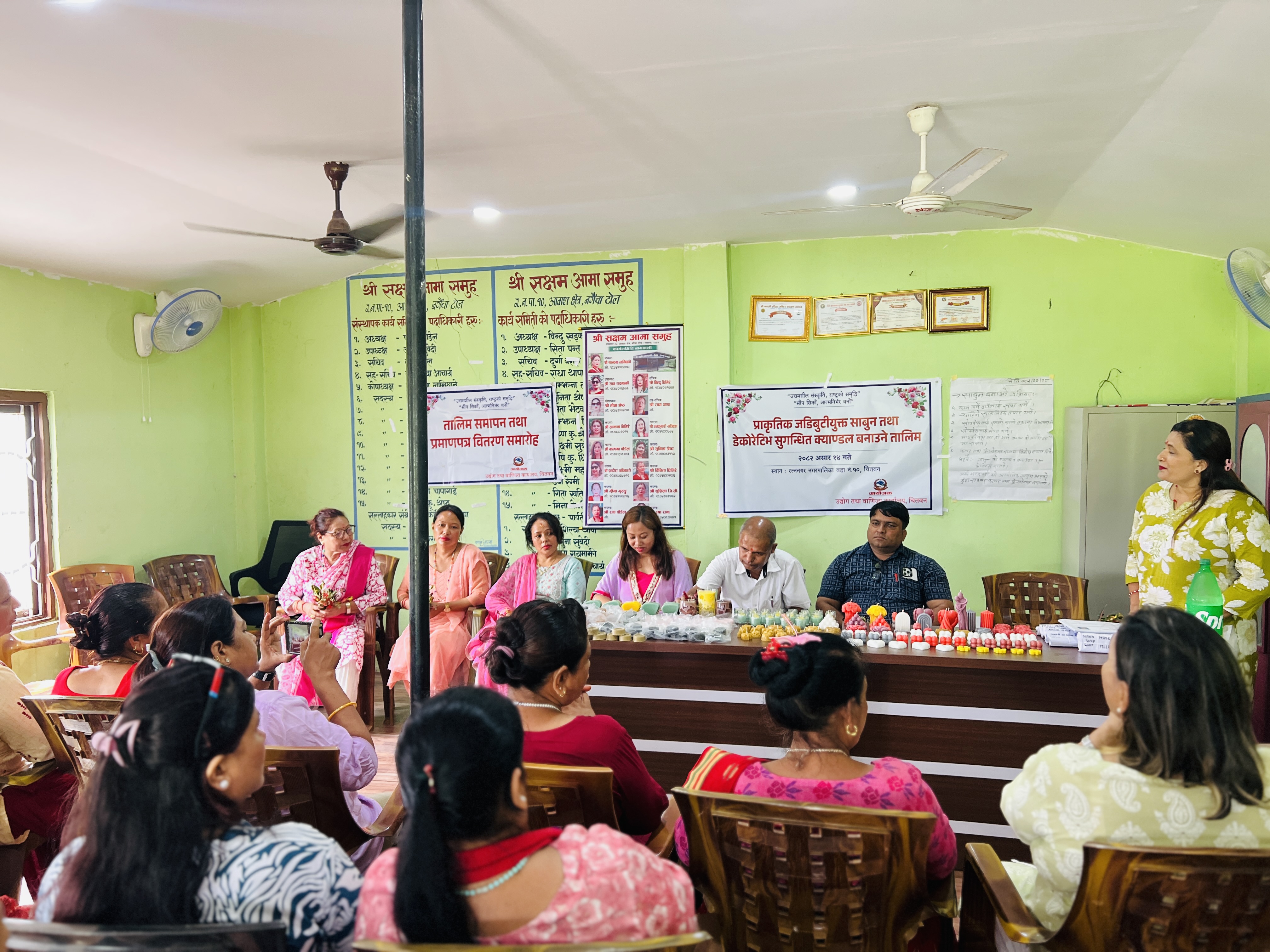 आ.व. 081-082 मा मिति 2082-03-14 देखि 2082-03-22 सम्म प्राकृतिक जडिबुटियुक्त साबुन तथा सुगन्धित क्याण्डल बनाउने सिपमूलक तालिम रत्ननगर नगरपालिका वडा नं. 10, चितवनमा सञ्चालन भएका केही तस्विरहरू।